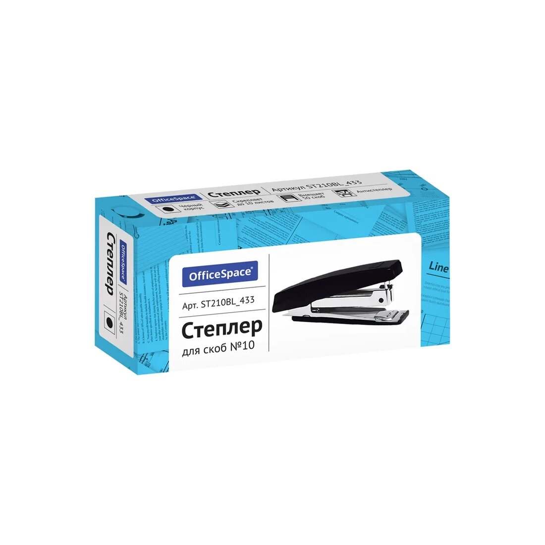 Степлер №10 OfficeSpace до 10л, пластиковый корпус, черный, St210BL_433 интересное: