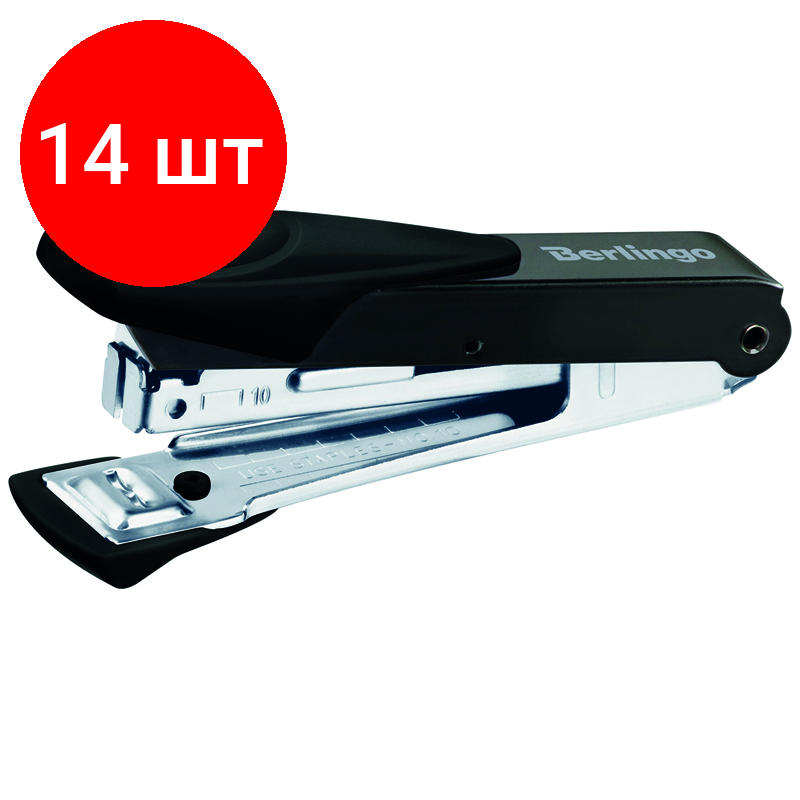 Купить Комплект 14 шт, Степлер №10 Berlingo "Power TX" до 20л, металлический корпус, черный