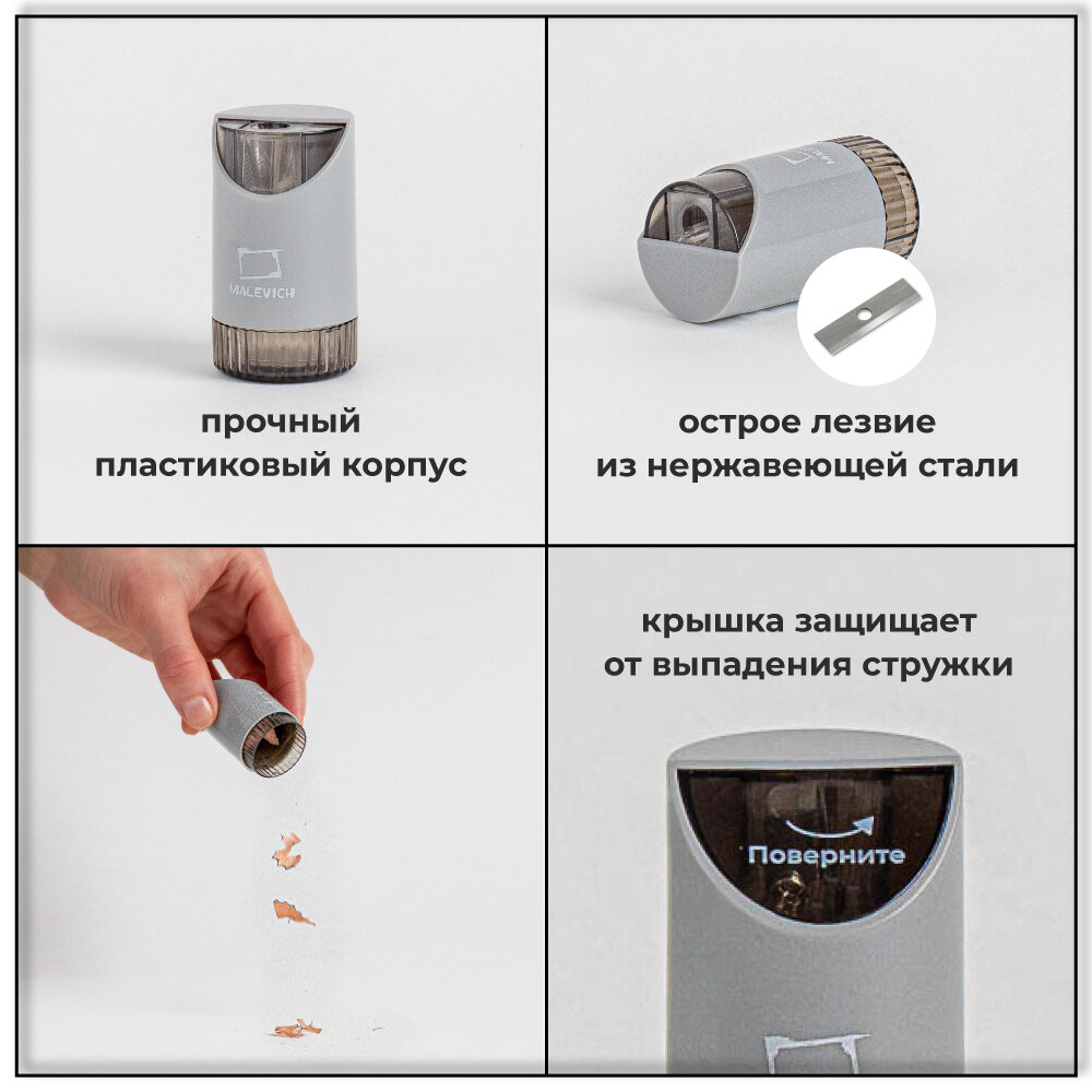 Комплект точилки с контейнером Малевичъ, серая и зеленая, 2 шт интересное: