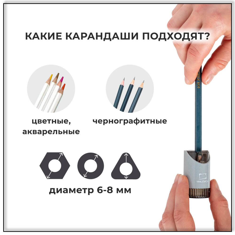 Комплект точилки с контейнером Малевичъ, точилка для карандашей серая, 2 шт интересное: