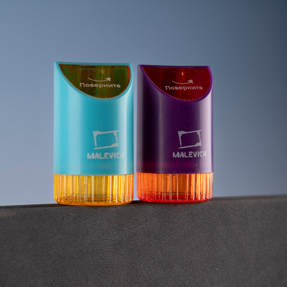 Купить Комплект точилки с контейнером Малевичъ, голубая и фиолетовая, 2 шт