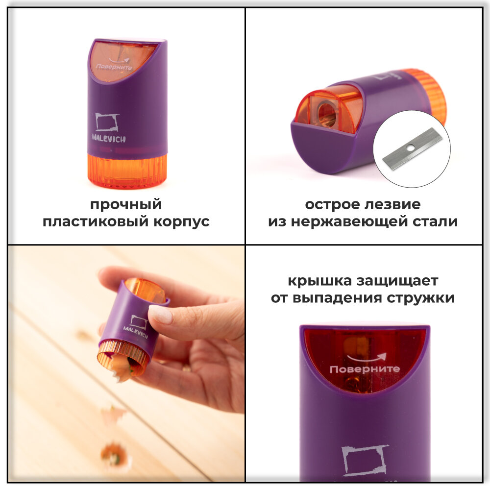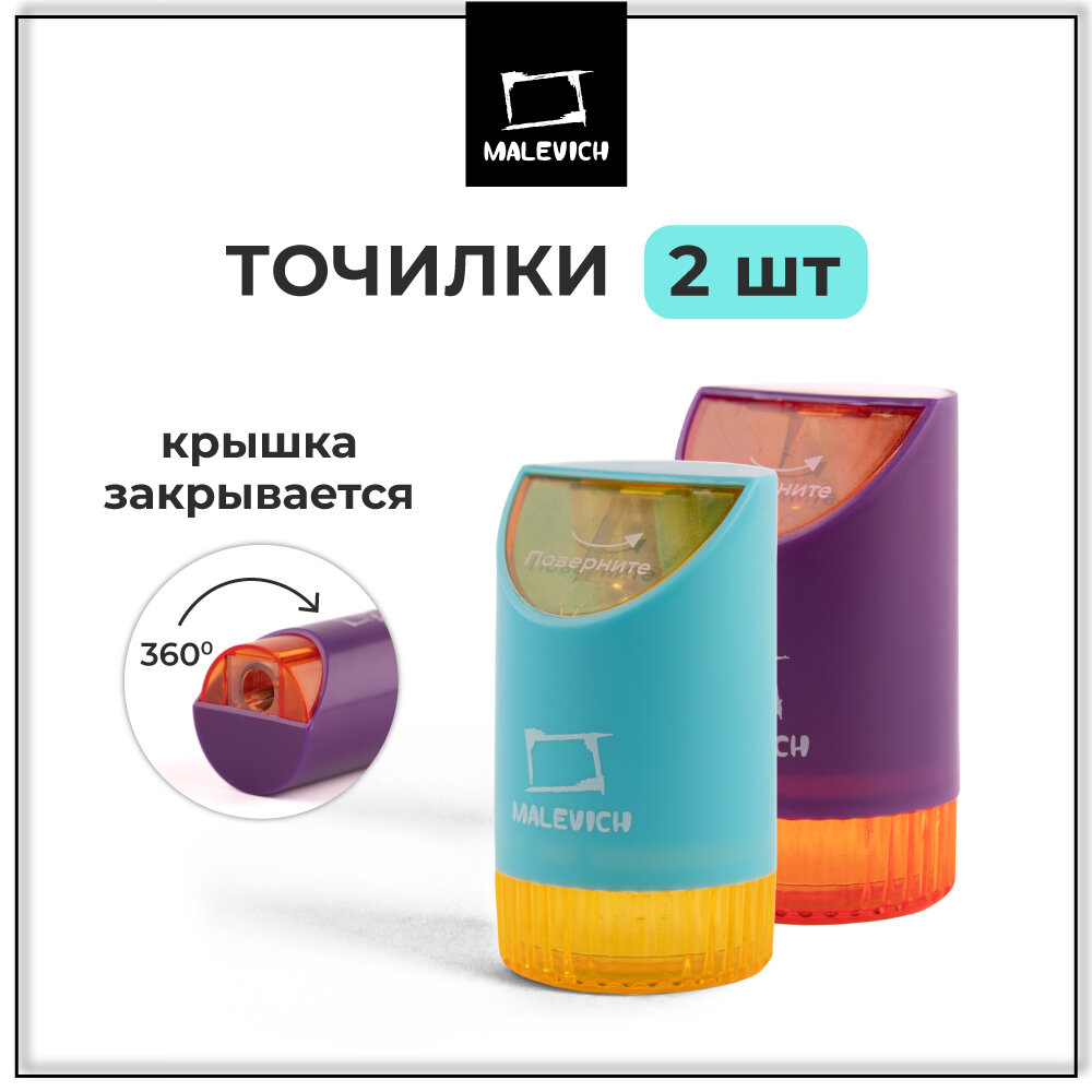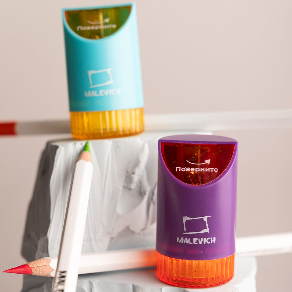 Комплект точилки с контейнером Малевичъ, голубая и фиолетовая, 2 шт интересное: