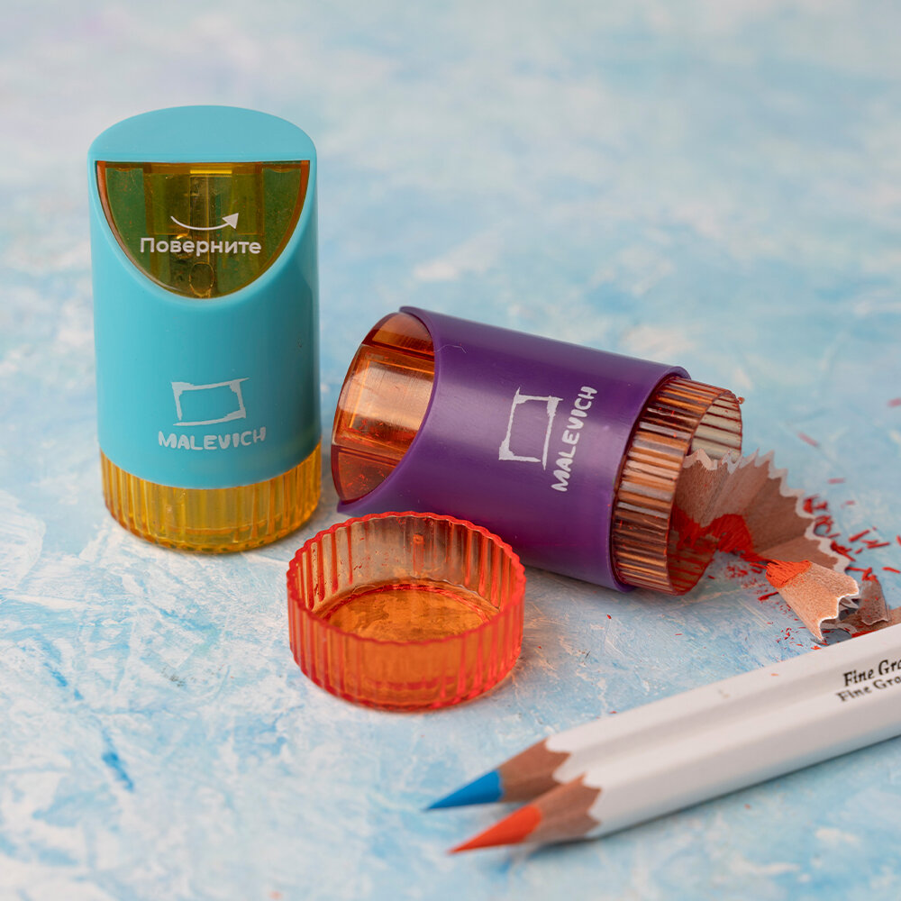 Комплект точилки с контейнером Малевичъ, голубая и фиолетовая, 2 шт