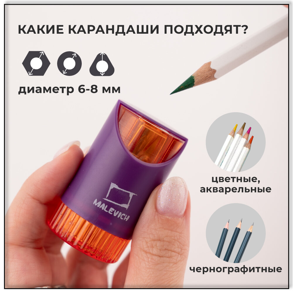 Точилка для карандашей с контейнером Малевичъ, фиолетовая, набор 2 шт интересное: