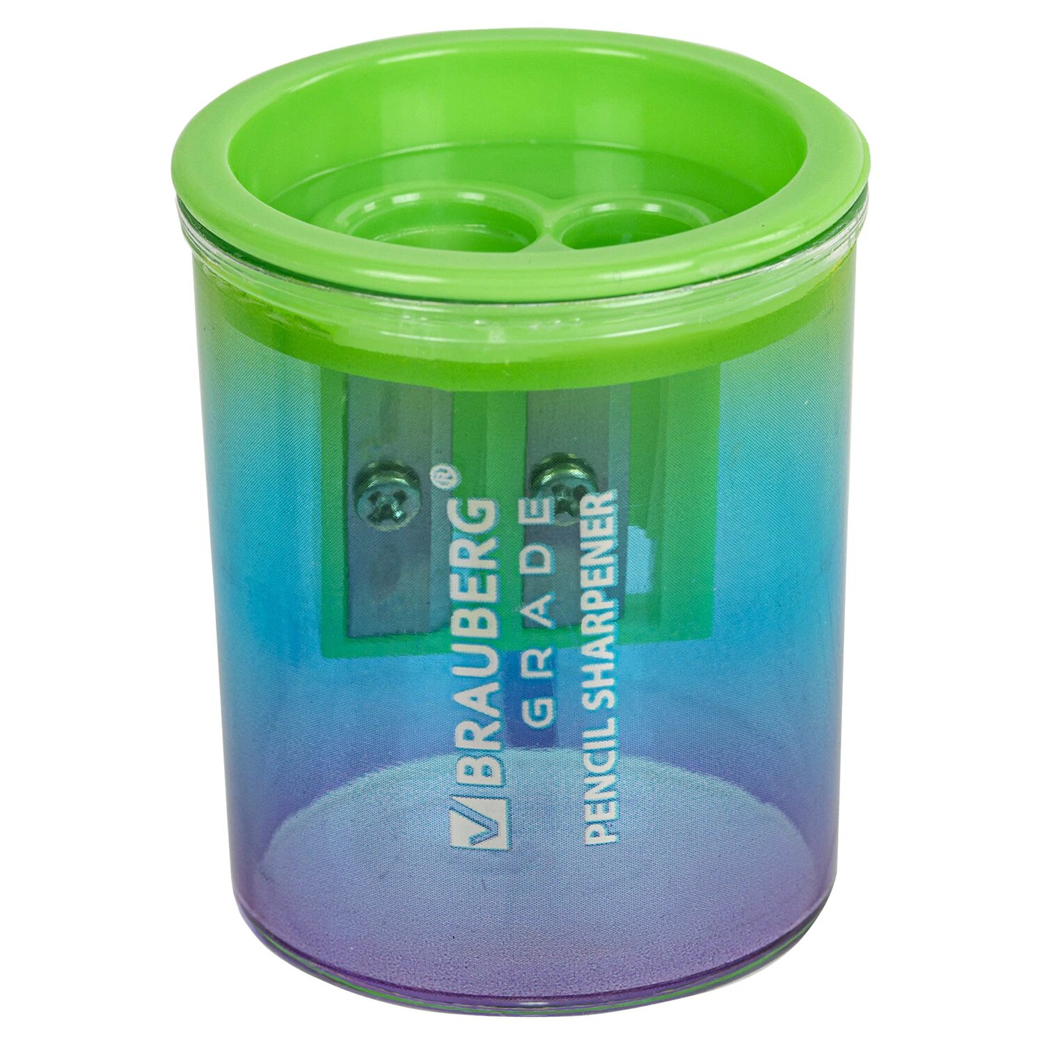 Точилка для классических и утолщенных карандашей BRAUBERG "Grade", 2 отверстия, с контейнером, 271998