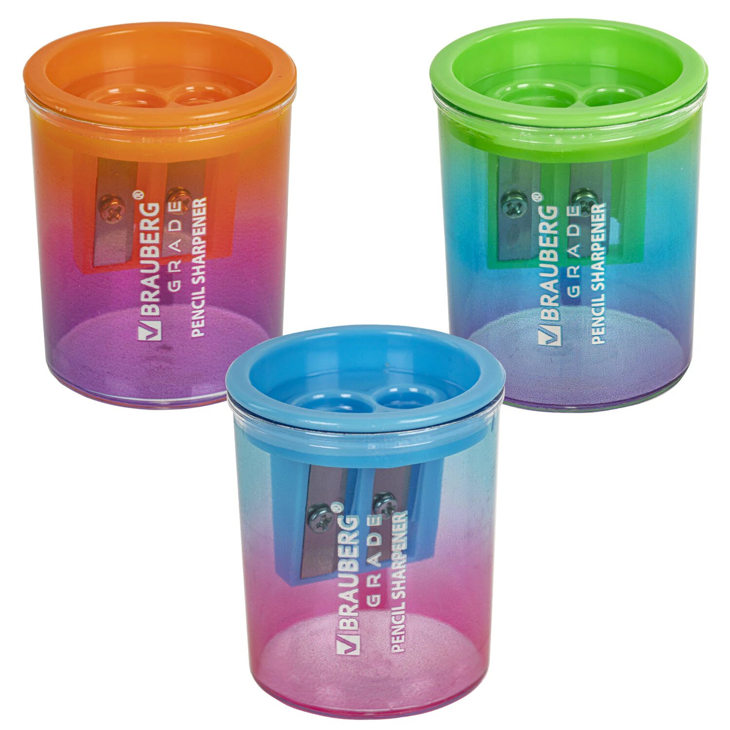 Купить Точилка для простых и цветных карандашей с контейнером, набор 3 штуки для школы, отверстия 8/11 мм, Brauberg Grade, 271999