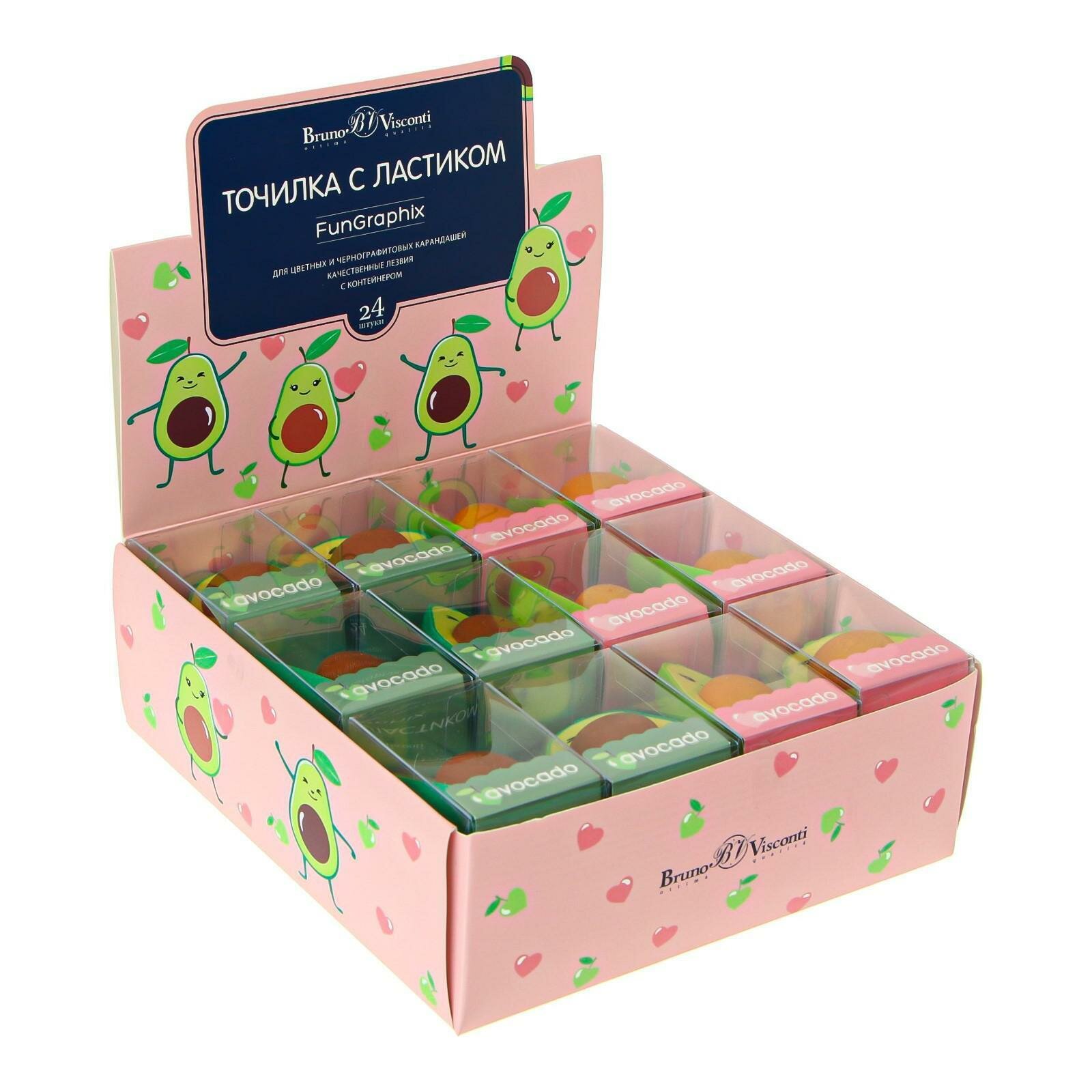 Точилка с контейнером и ластиком "FunGraphix. Авокадо", 2 цвета, Арт. 35-0036 Цена за 1 шт. интересное: