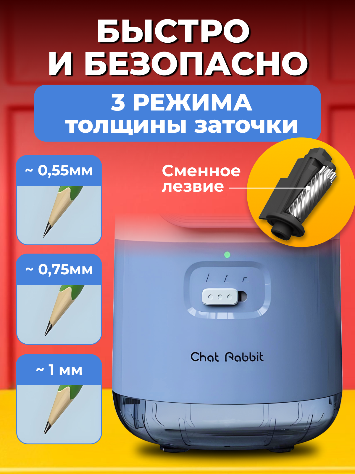 Автоматическая точилка для карандашей Chat Rabbit, настольная точилка для карандашей, голубая интересное: