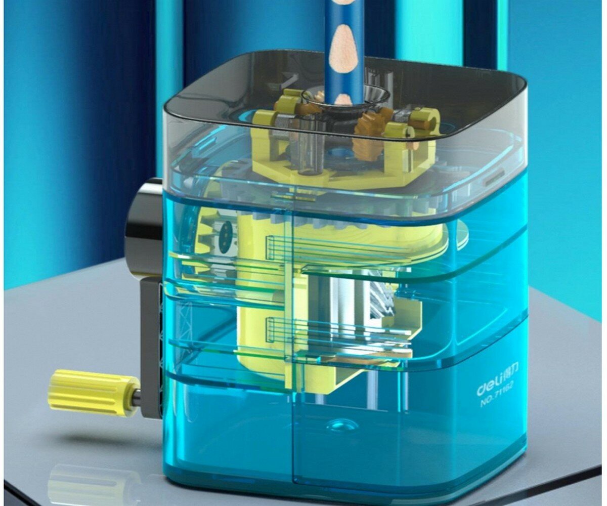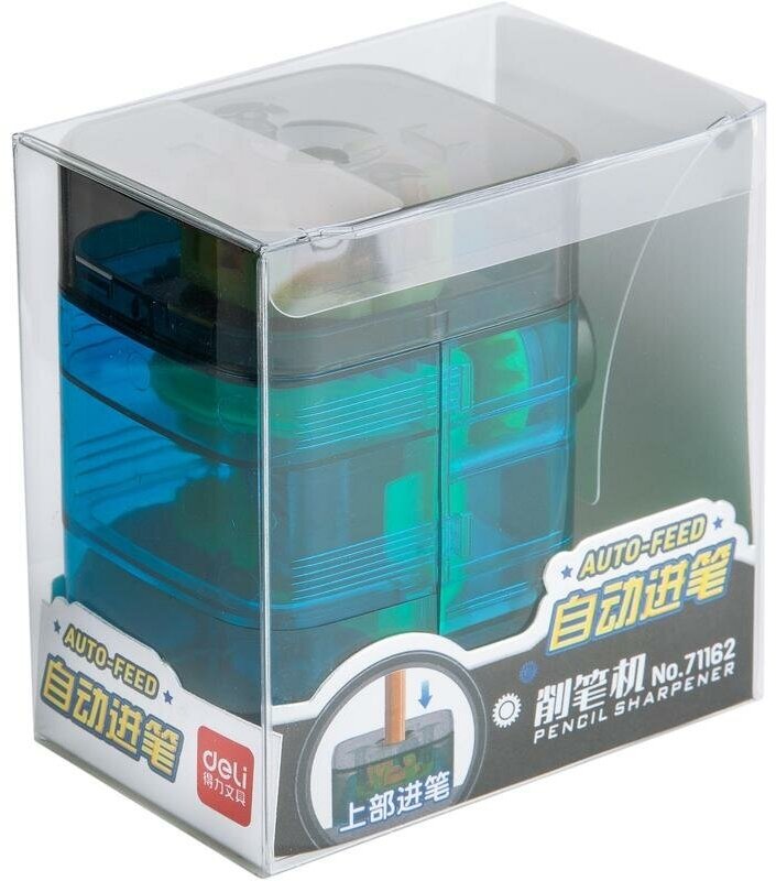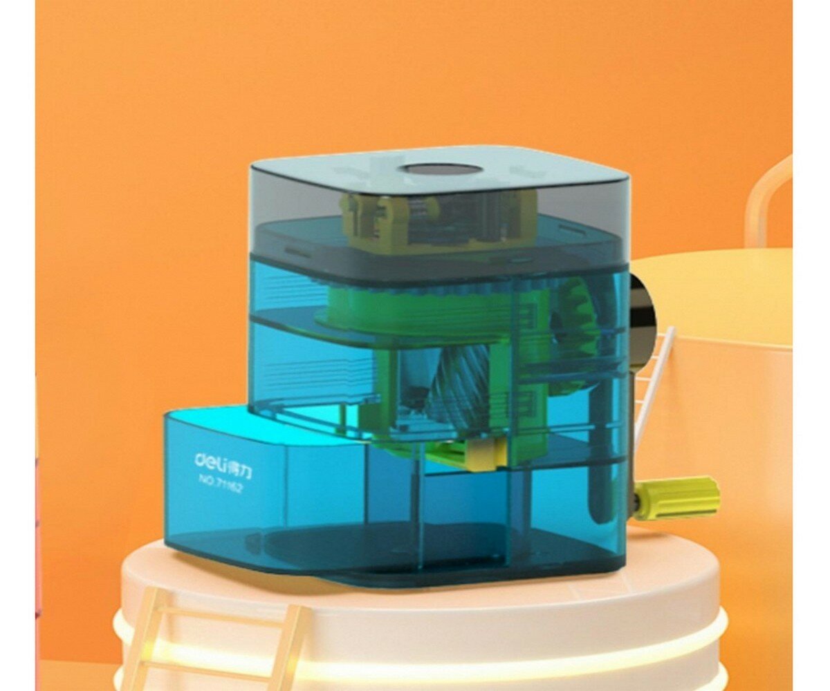 Купить Точилка механическая Deli, вертикальн. подача, 1 отв, полипропил. уп, синий