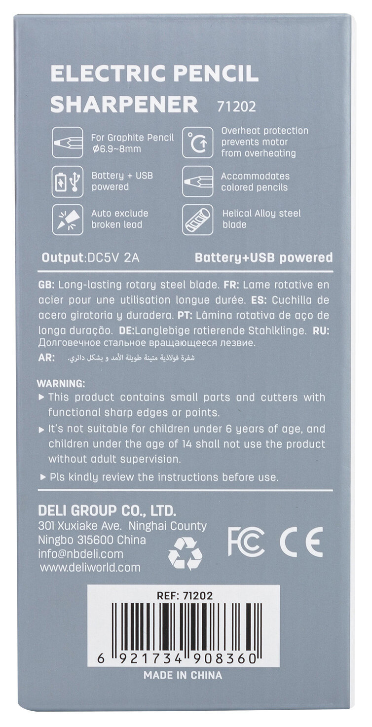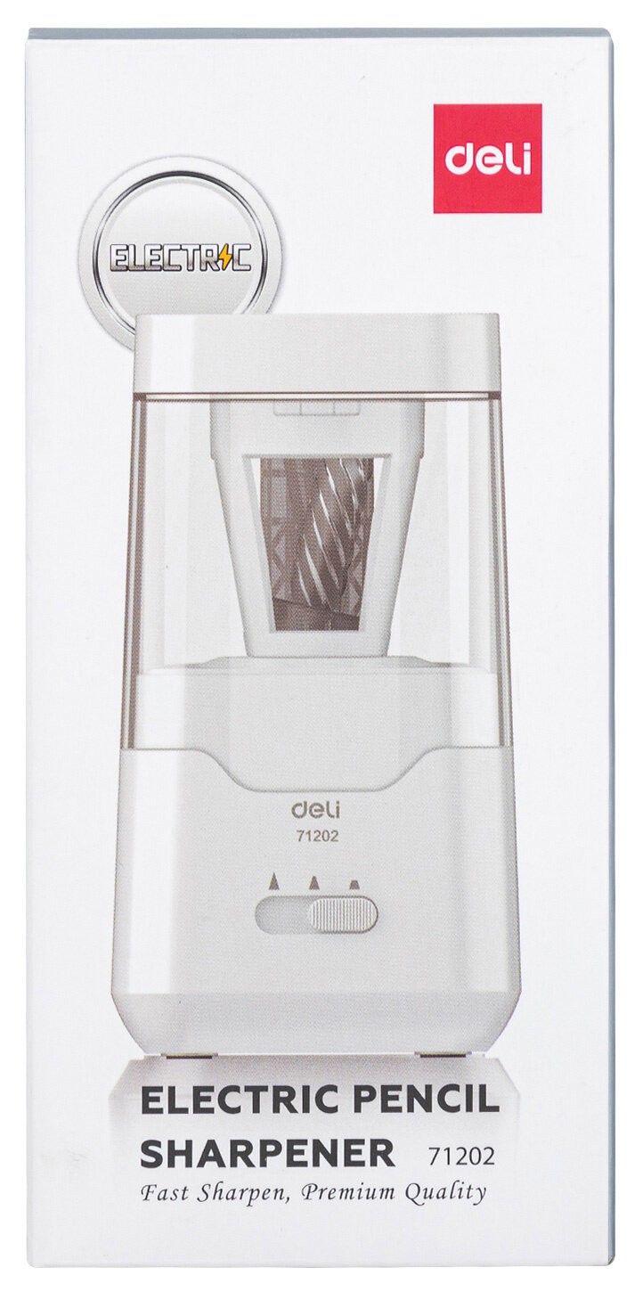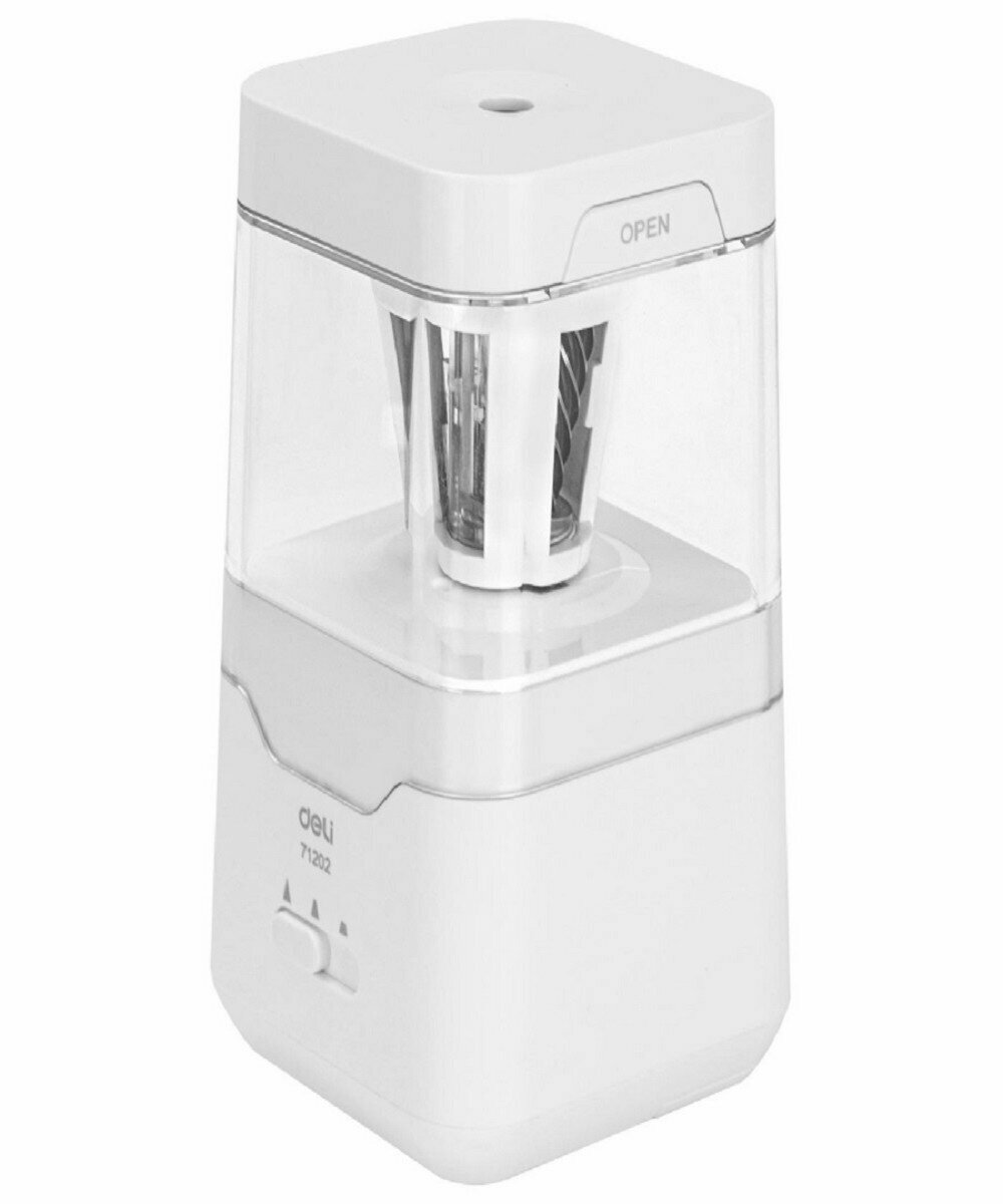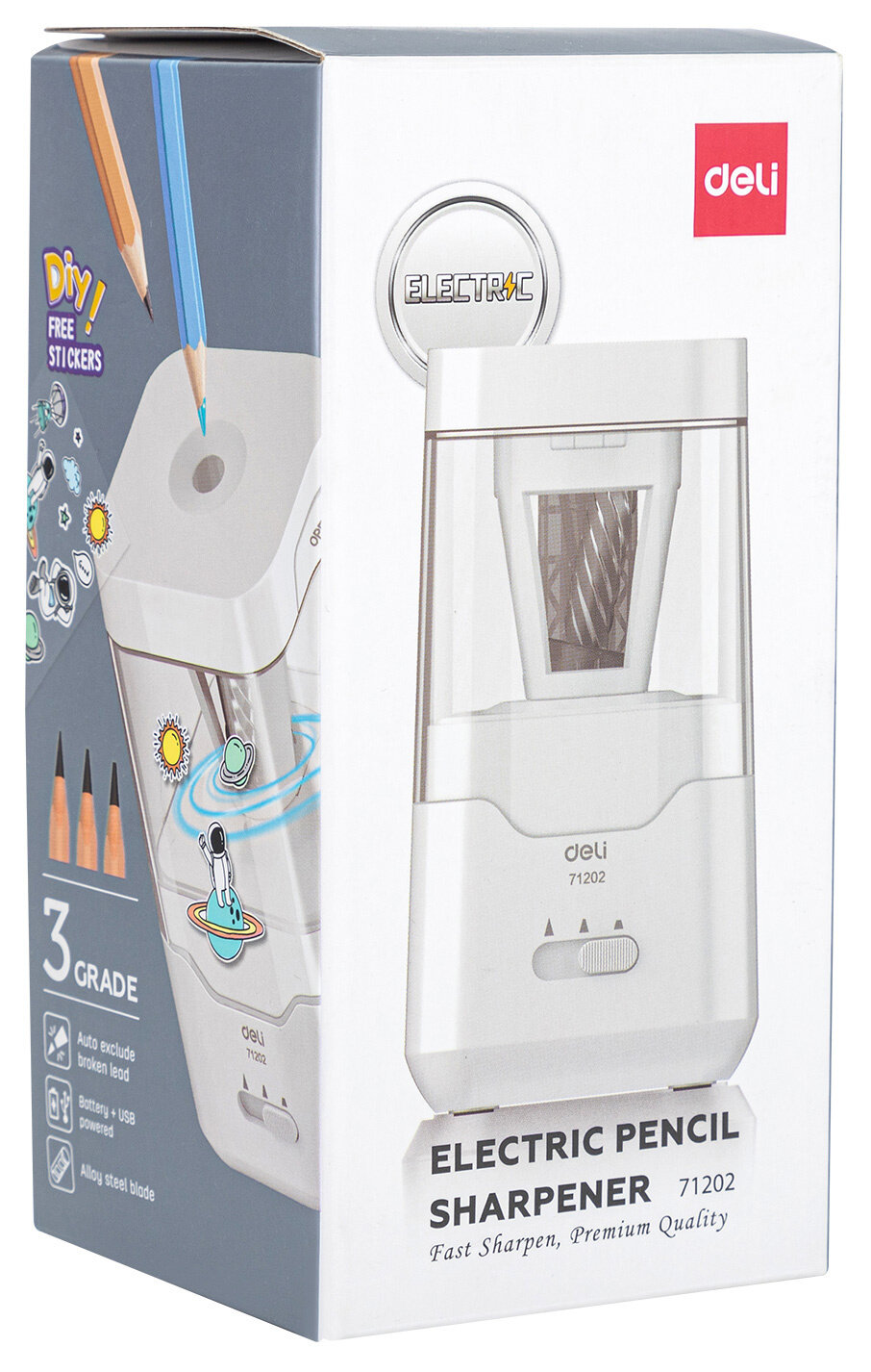 Купить Точилка Deli для карандашей электрич. , 1 отв, пластик , батарея+ USB, белый