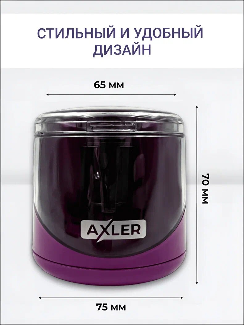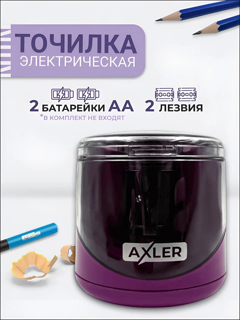Точилка для карандашей AXLER, автоматическая электрическая с контейнером пластиковая на батарейках АА, двойное лезвие