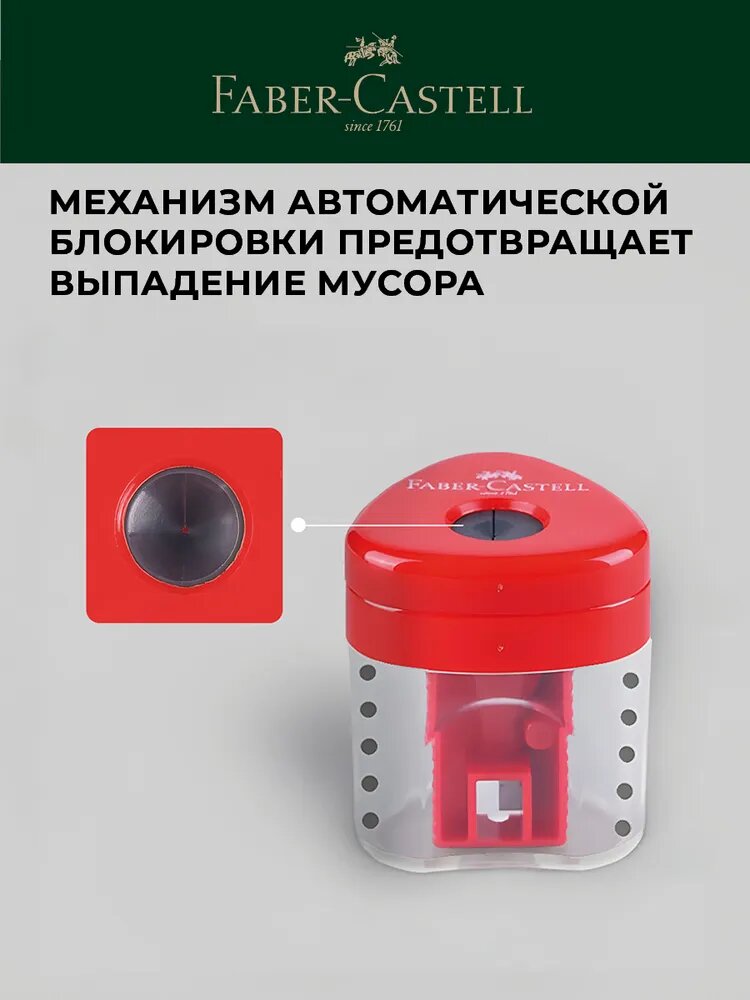 Точилка пластиковая со "шторкой" Faber-Castell "Grip Auto Mini" 1 отверстия, контейнер, ассорти, 1шт, пакет интересное: