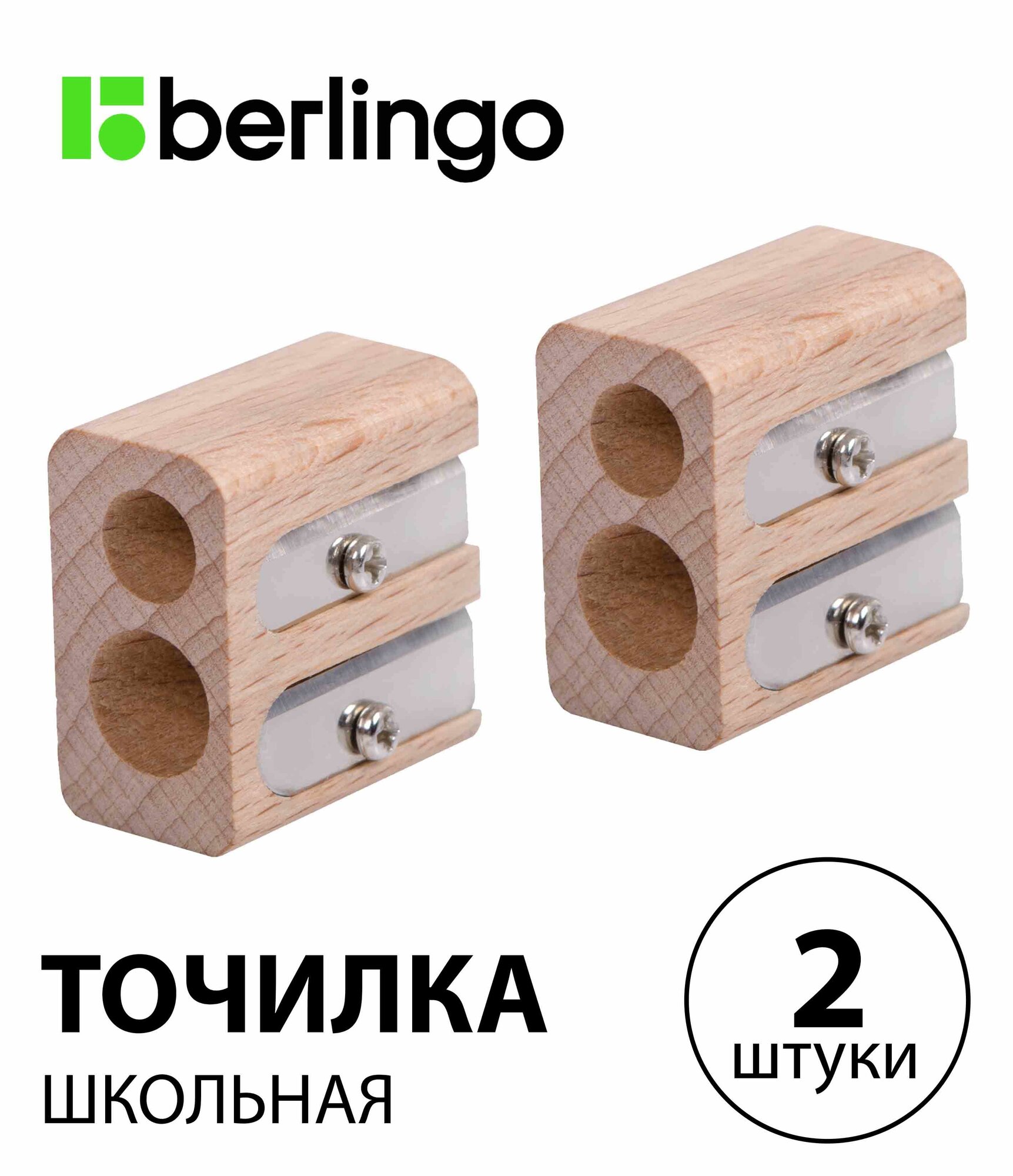 Точилка деревянная для карандашей Berlingo "Green Series", 2 отверстия