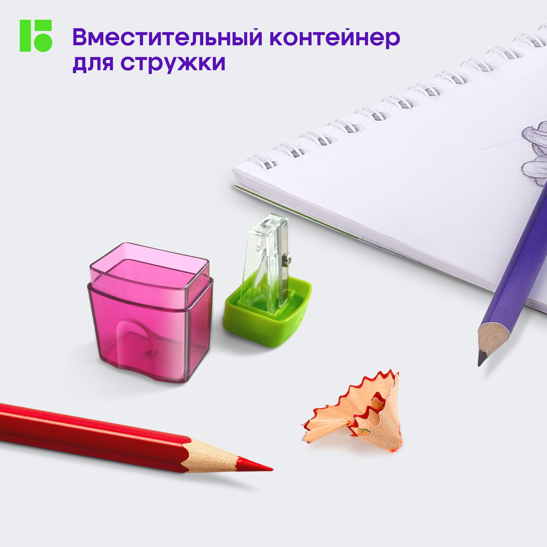Точилка пластиковая Berlingo "Fuze" 1 отверстие, контейнер, 4шт, блистер интересное: