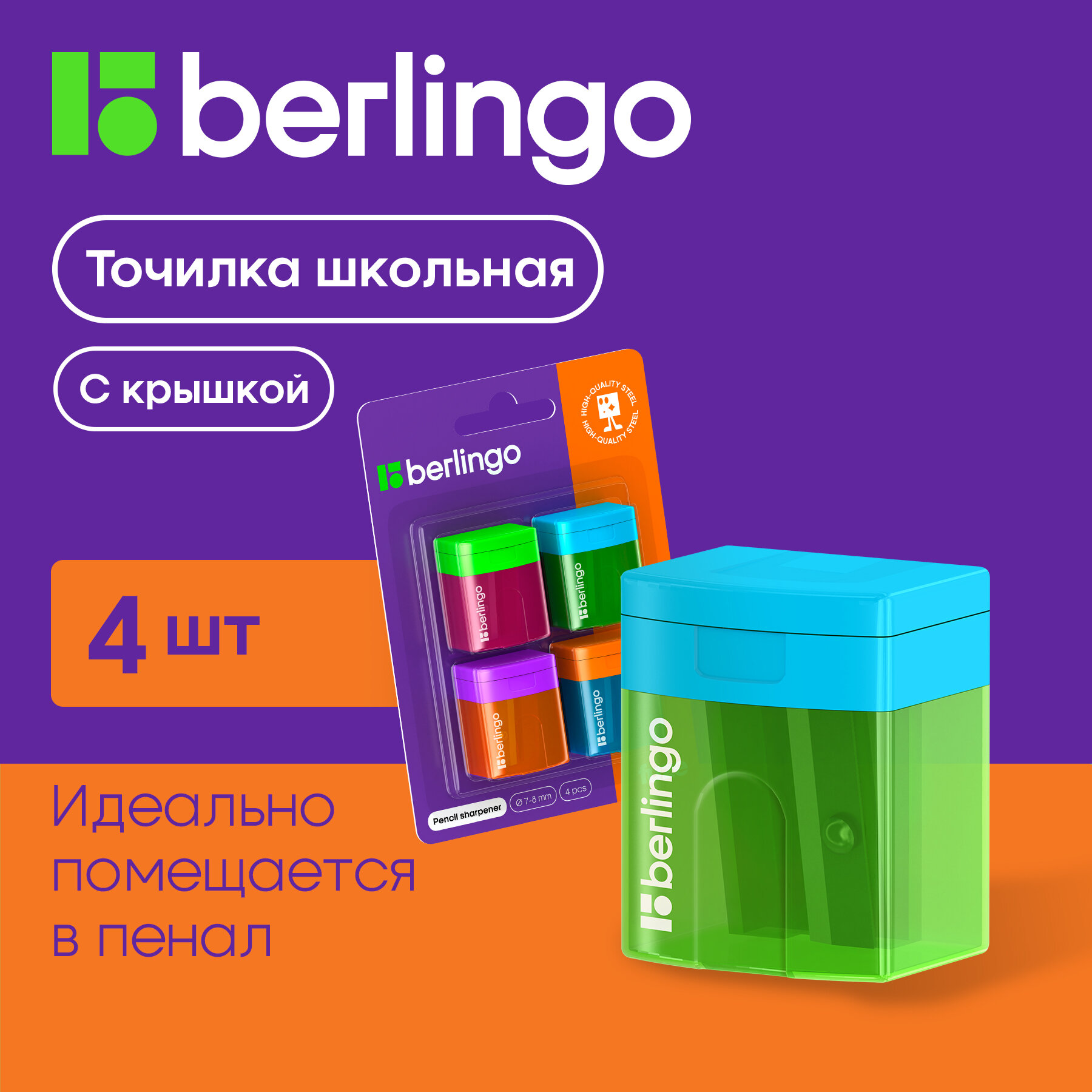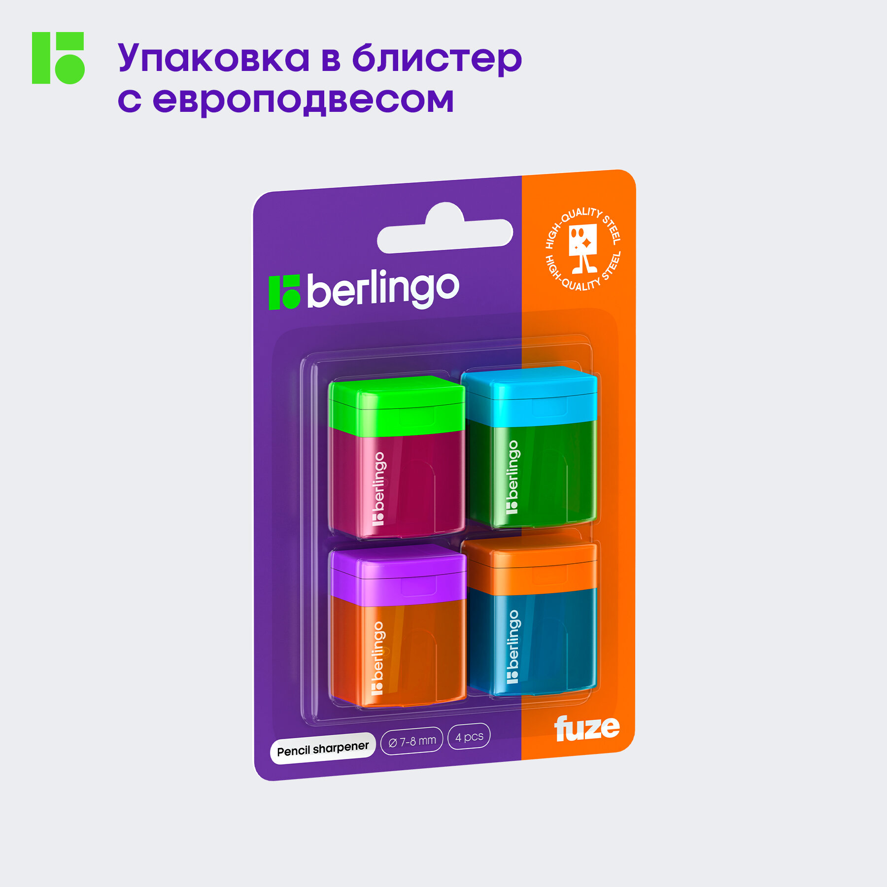 Купить Точилка пластиковая Berlingo "Fuze" 1 отверстие, контейнер, 4шт, блистер