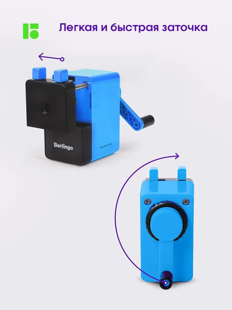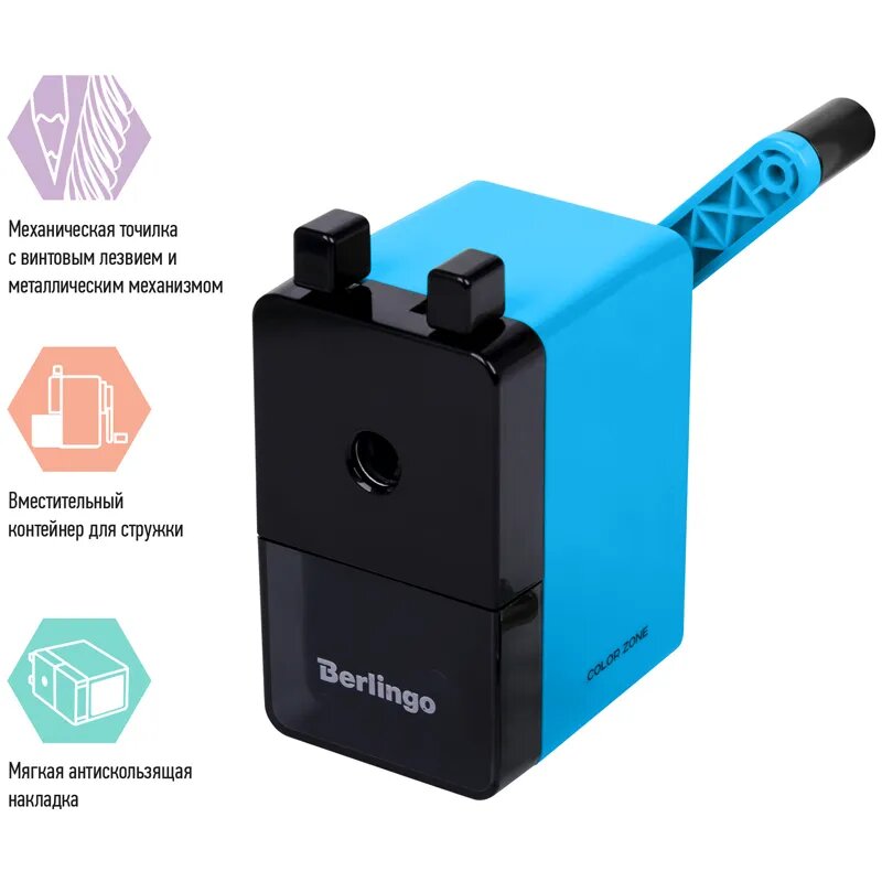 Точилка механическая Berlingo "Color Zone", голубая, пласт. корпус, инд. упак. интересное: