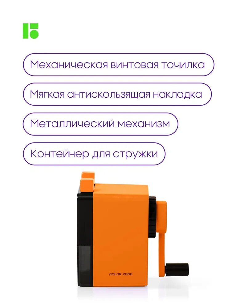 Точилка механическая Berlingo "Color Zone", оранжевая, пласт. корпус, инд. упак. интересное: