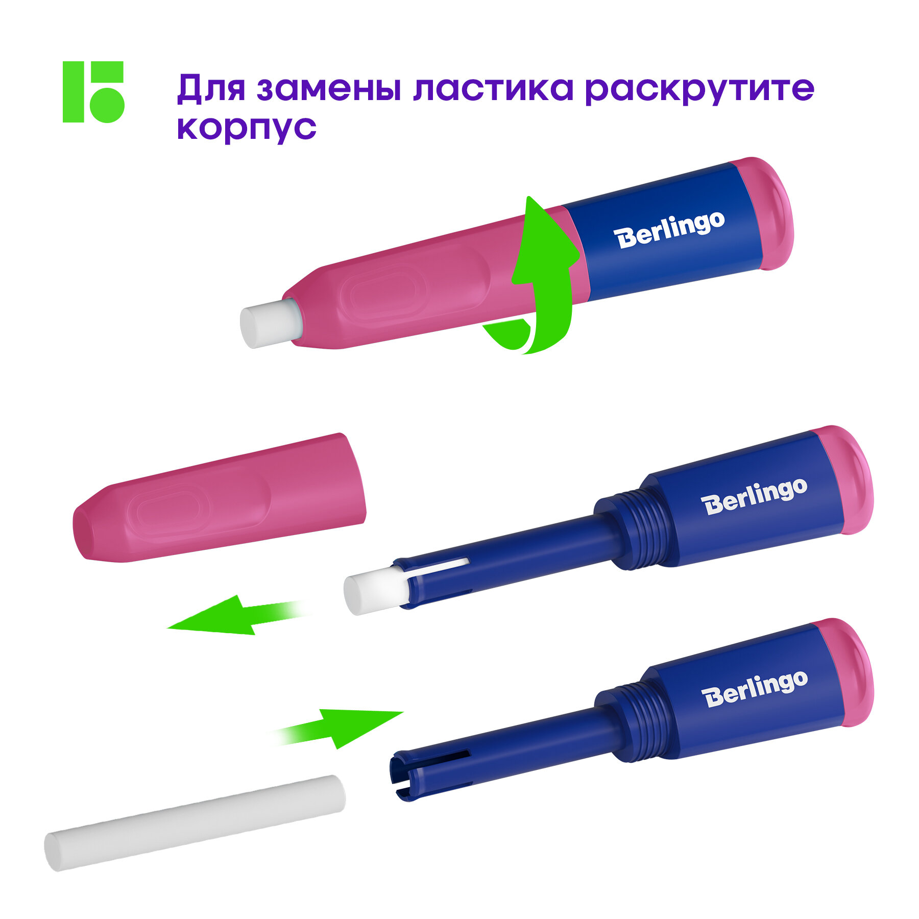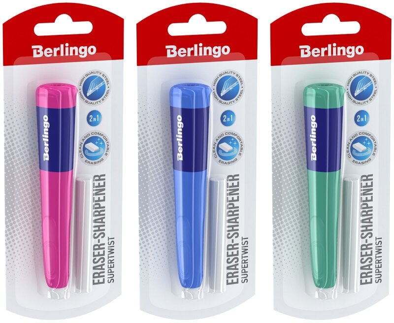 Точилка пластиковая с ластиком Berlingo "Supertwist", 1 отверстие, блистер, ассорти интересное: