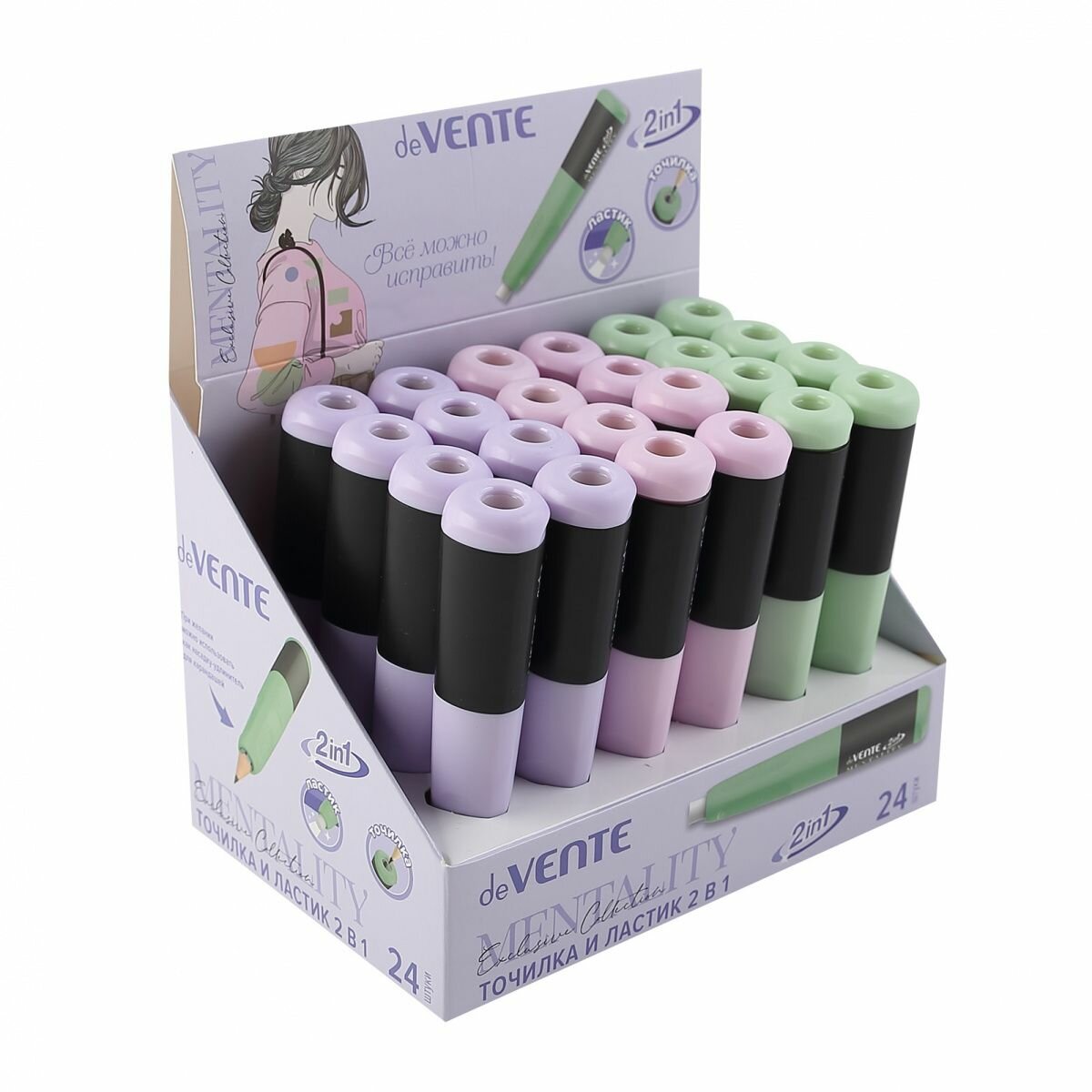 Купить Точилка и ластик 2 в 1 Ассорти 3 вида Mentality