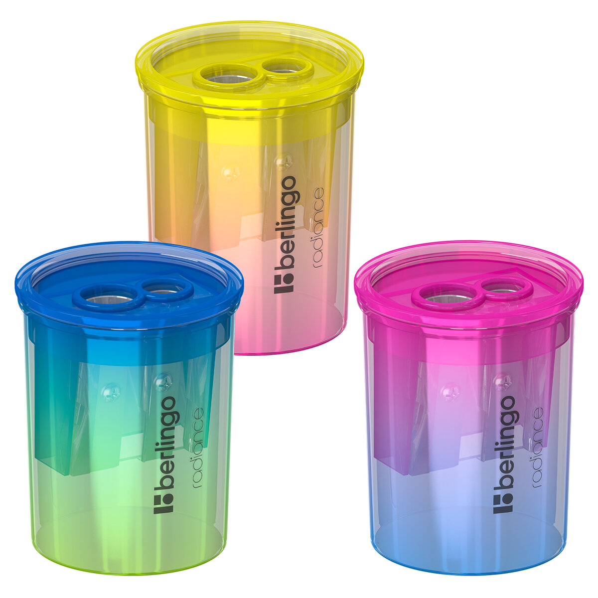 Купить Точилка пластиковая Berlingo "Radiance", с контейнером, 2 отверстия, ассорти 287223