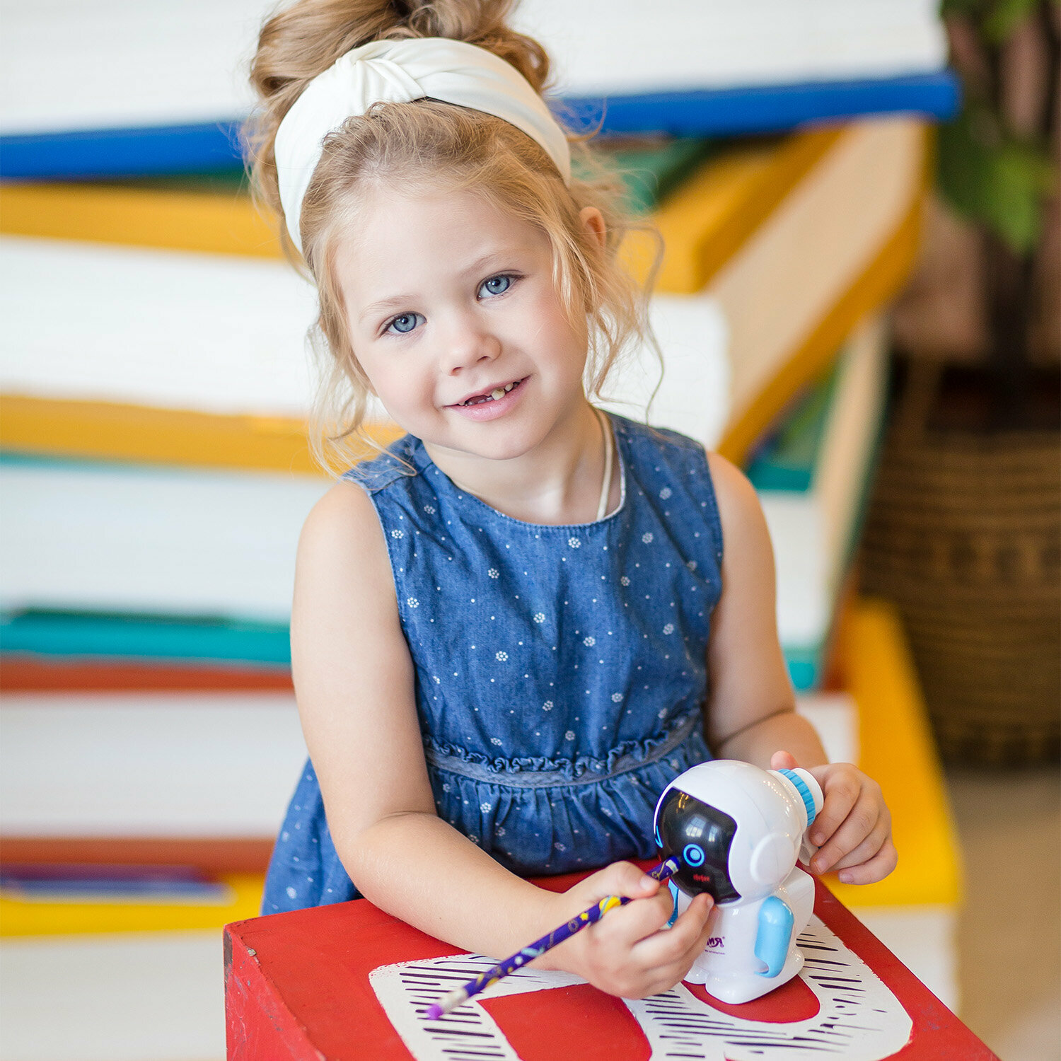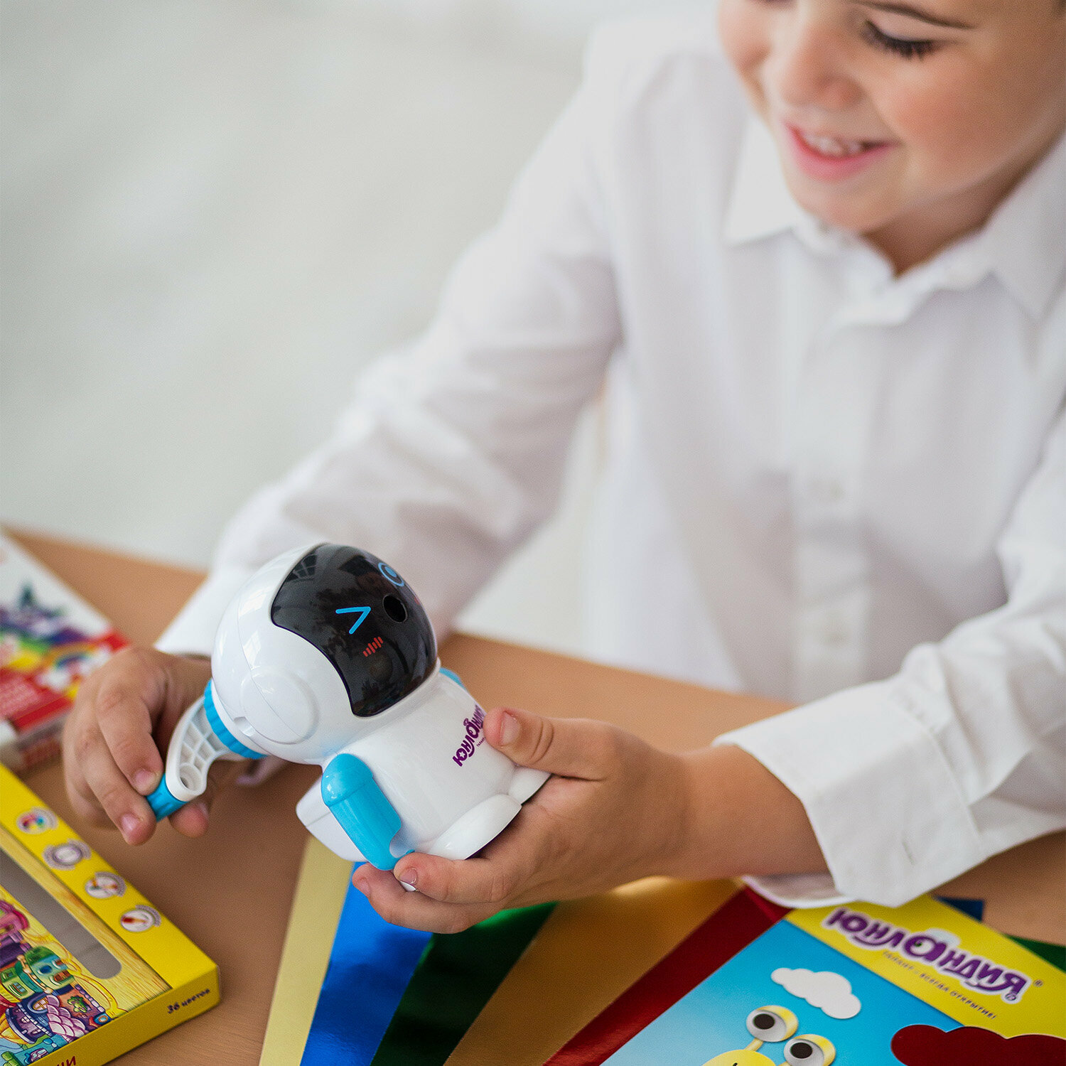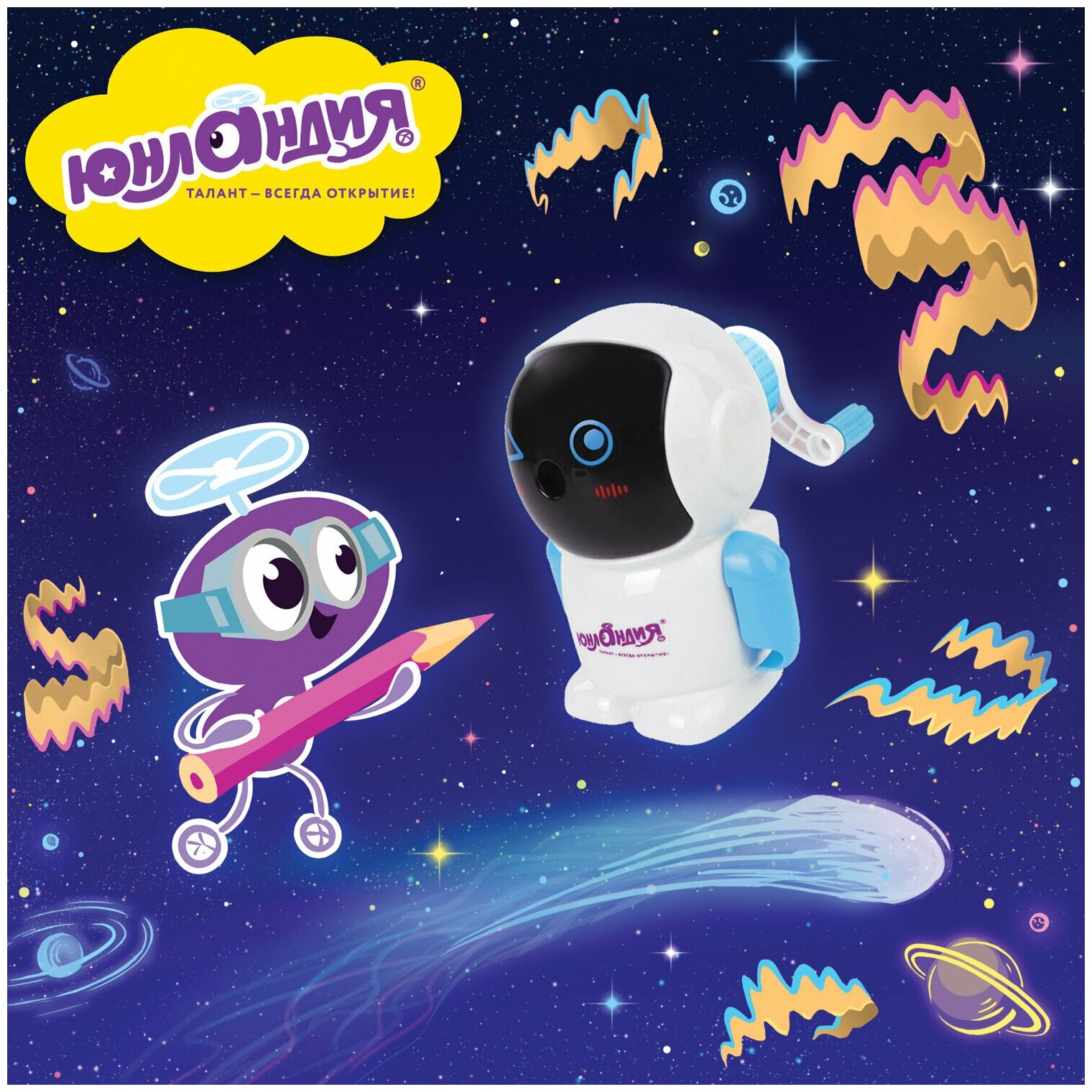 Точилка механическая настольная для карандашей с контейнером для стружки Юнландия Юнландик в Космосе, корпус белый с голубым, 228486 интересное: