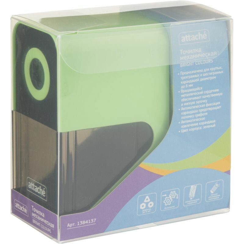 Ниже Вы можете прочитать отзывы на Точилка механическая Attache Bright Colours, авто-фиксация карандаша, зеленый, ознакомится с подробными характеристиками, посмотреть интересные обзоры и фотографии на Точилка механическая Attache Bright Colours, авто-фиксация карандаша, зеленый.