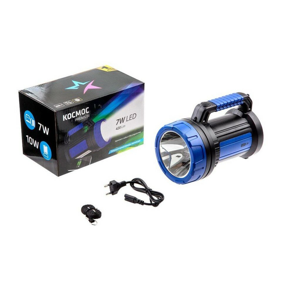 Фонарь светодиодный аккум. KOSMOS premium 7W LED зарядное устройство 220/12В USB зарядка телефона космос KOSACCU9107WUSB ( 1шт. )