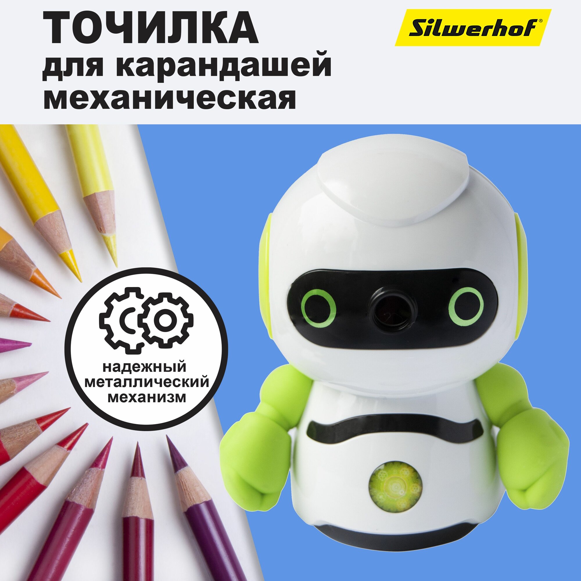 Точилка для карандашей механическая Silwerhof Robot Монстрики 1 отверстие пластик интересное: