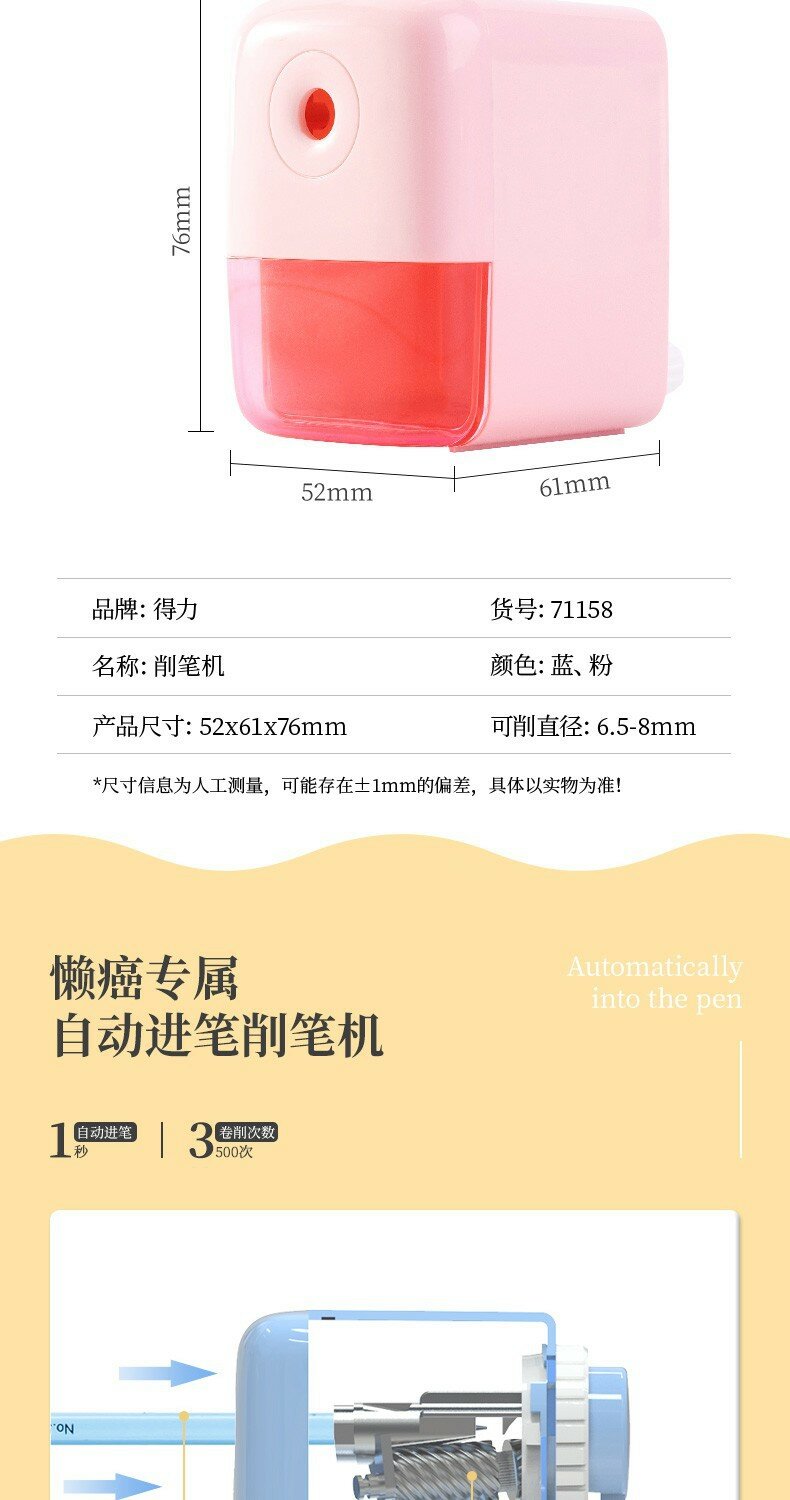 Точилка для карандашей Deli 71158, ручная, пластик, 52x61x76 мм