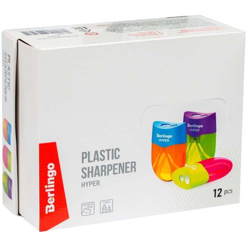 Точилка пластиковая Berlingo "Hyper" 2 отверстия, контейнер, 3 шт интересное: