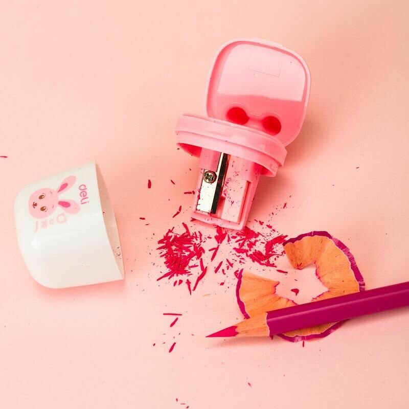 Точилка для карандашей Deli ER01300 пластиковая с контейнером ассорти интересное: