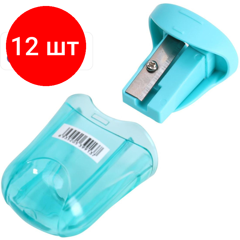 Комплект 12 штук, Точилка ручная Deli U-touch, 1 отверстие, с контейнером, пластик, ассорти интересное:
