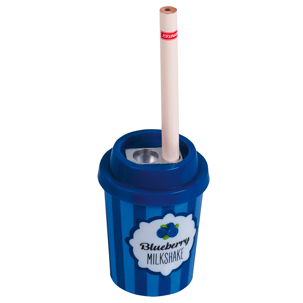 Точилка Cтакан Мilkshake двойная с коротким простым карандашом. Синий. Brunenn (Германия) интересное: