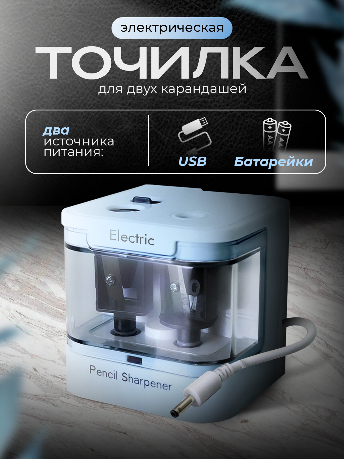 Точилка PRO.tect для 2 карандашей электрическая с кабелем для зарядки, Голубая интересное:
