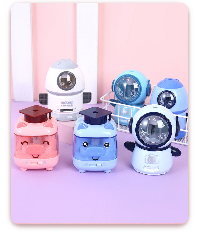 Купить Точилка для карандашей Lingjing "Astronaut Dr. Pig" 0910, электрическая, ABS, цвет электрик