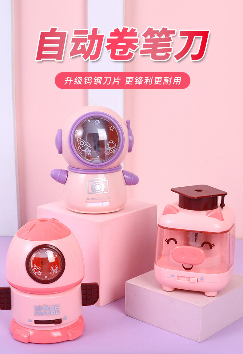 Точилка для карандашей Lingjing "Astronaut Dr. Pig", ABS, электрическая, розовая