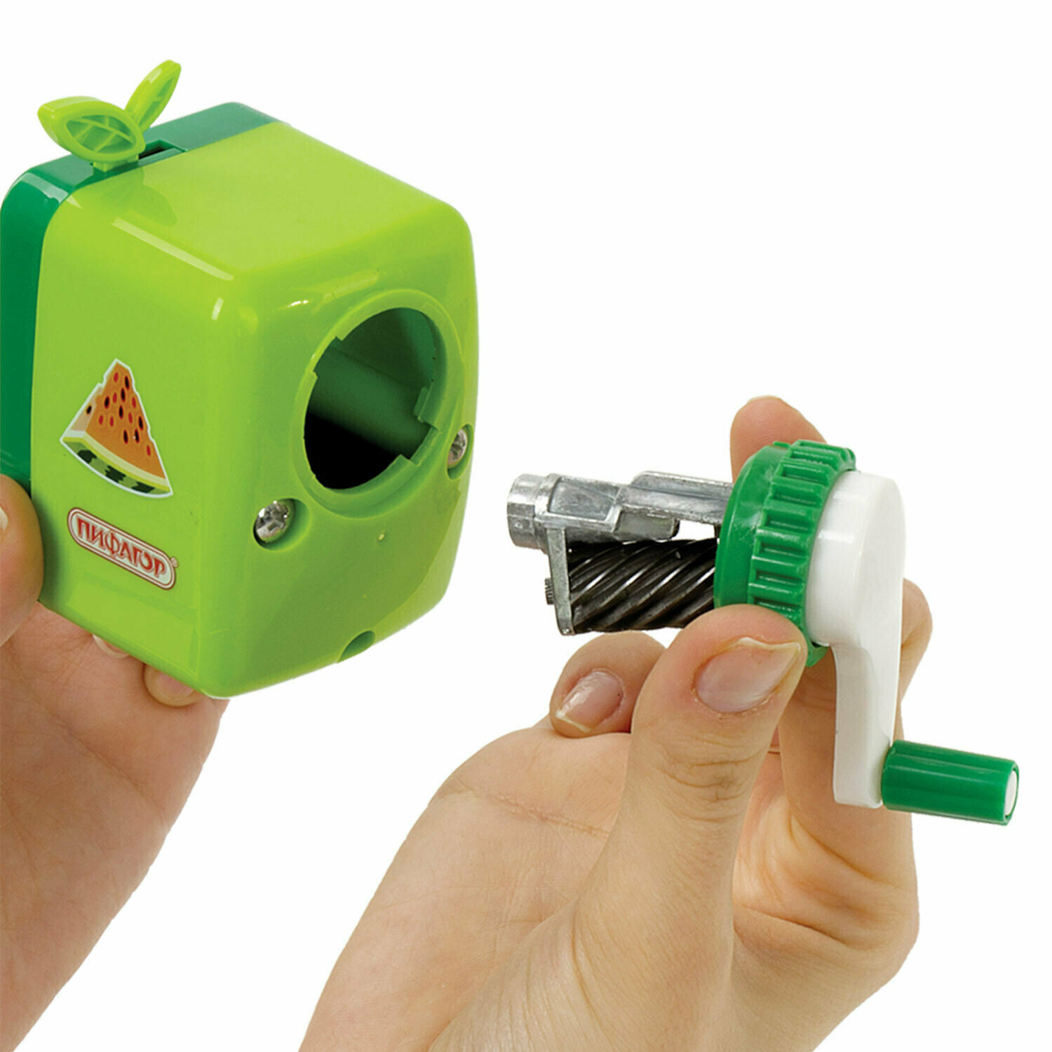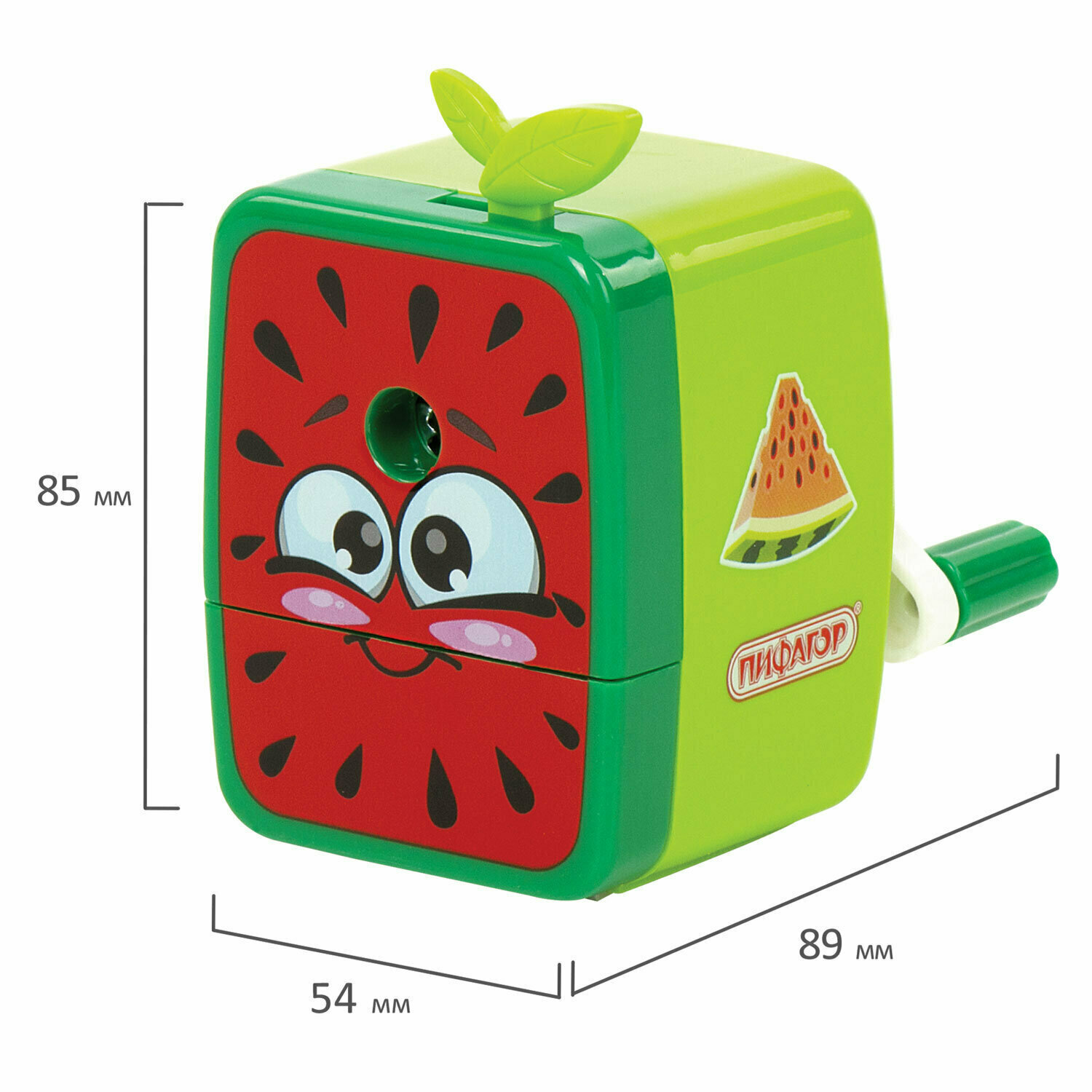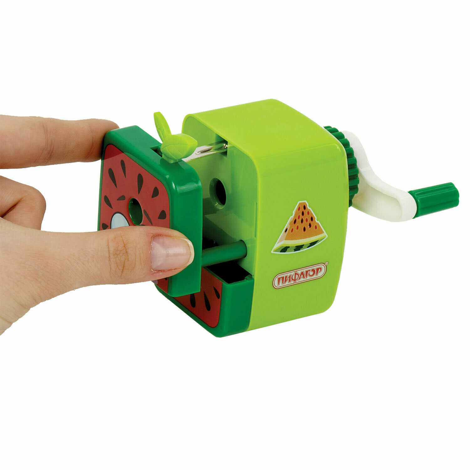 Точилка механическая Пифагор "Арбуз", корпус зеленый, красный (270427) интересное: