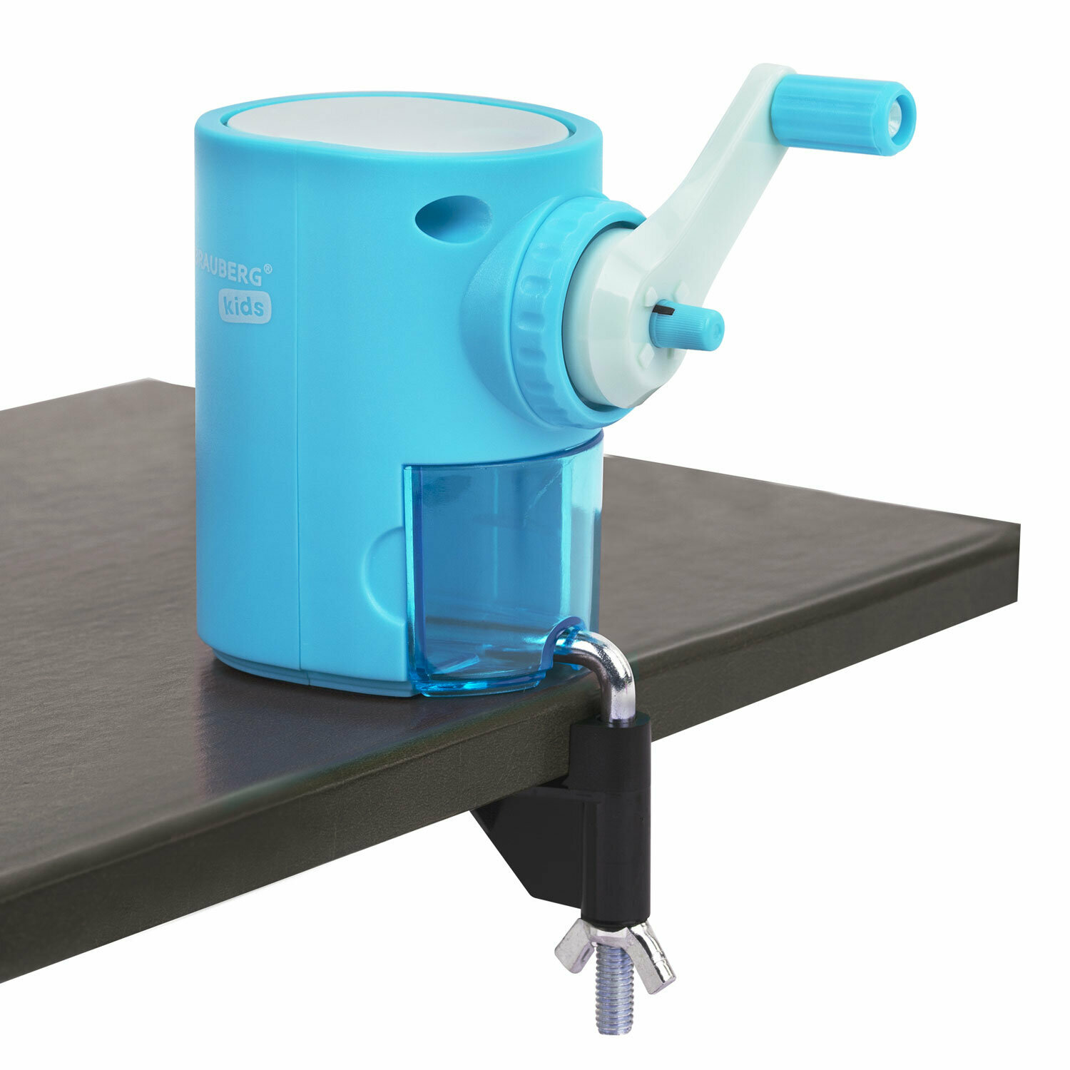 Купить Точилка механическая BRAUBERG KIDS, для простых и цветных карандашей, корпус голубой, крепление к столу, 272005