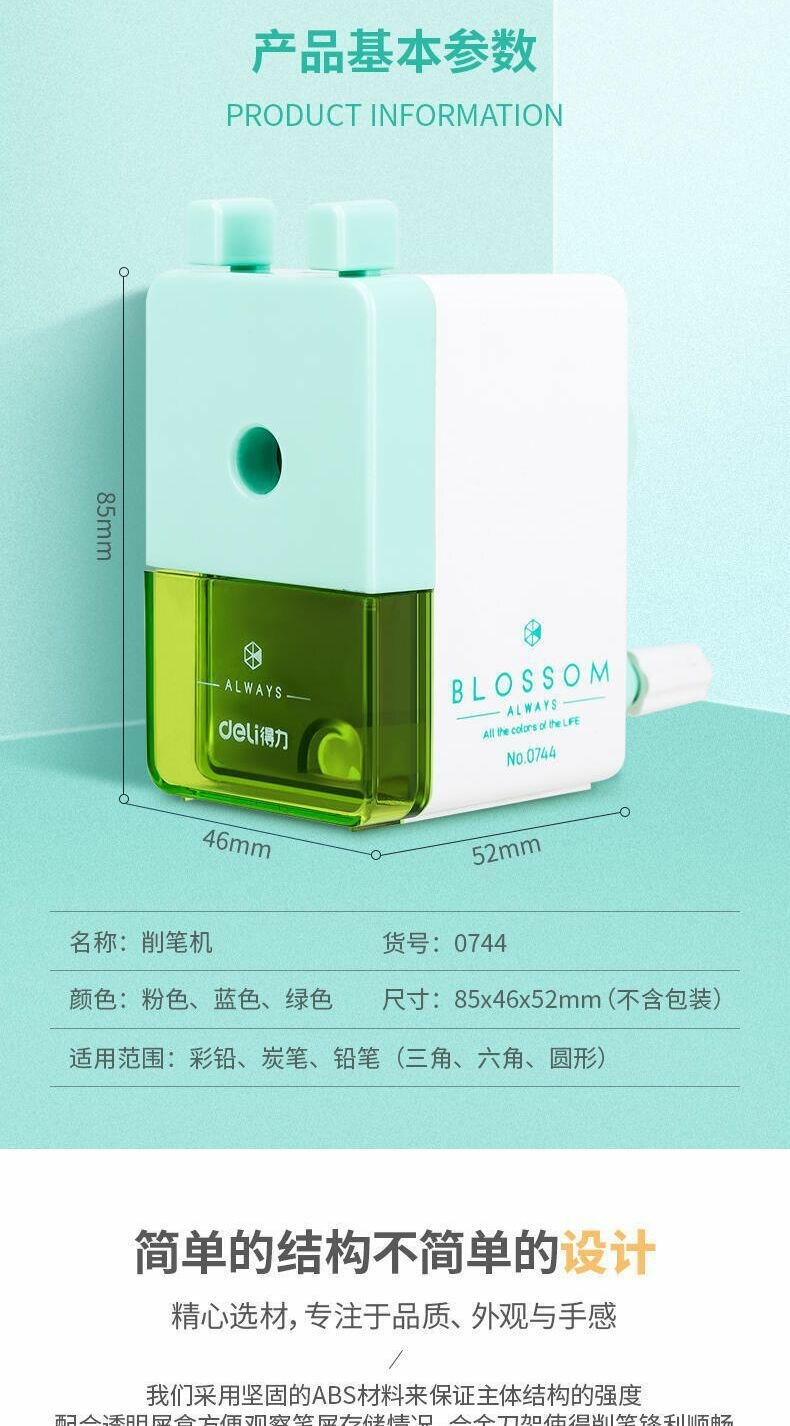 Точилка для карандашей 0744, зеленая, для начальной школы