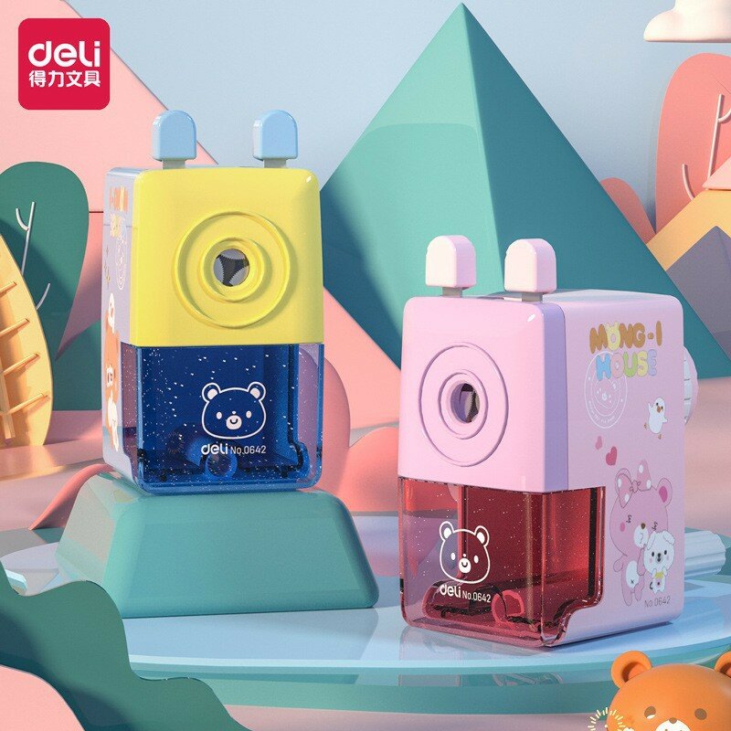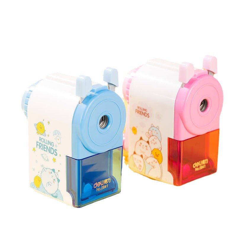 Точилка Deli 0642, классическая, вращающаяся, мультяшная, с ручным приводом, синяя