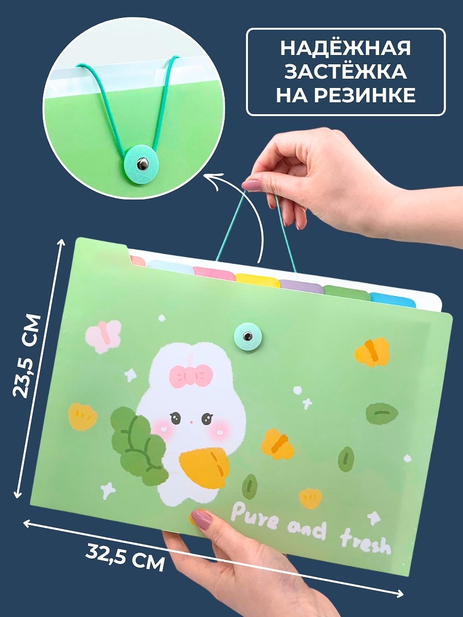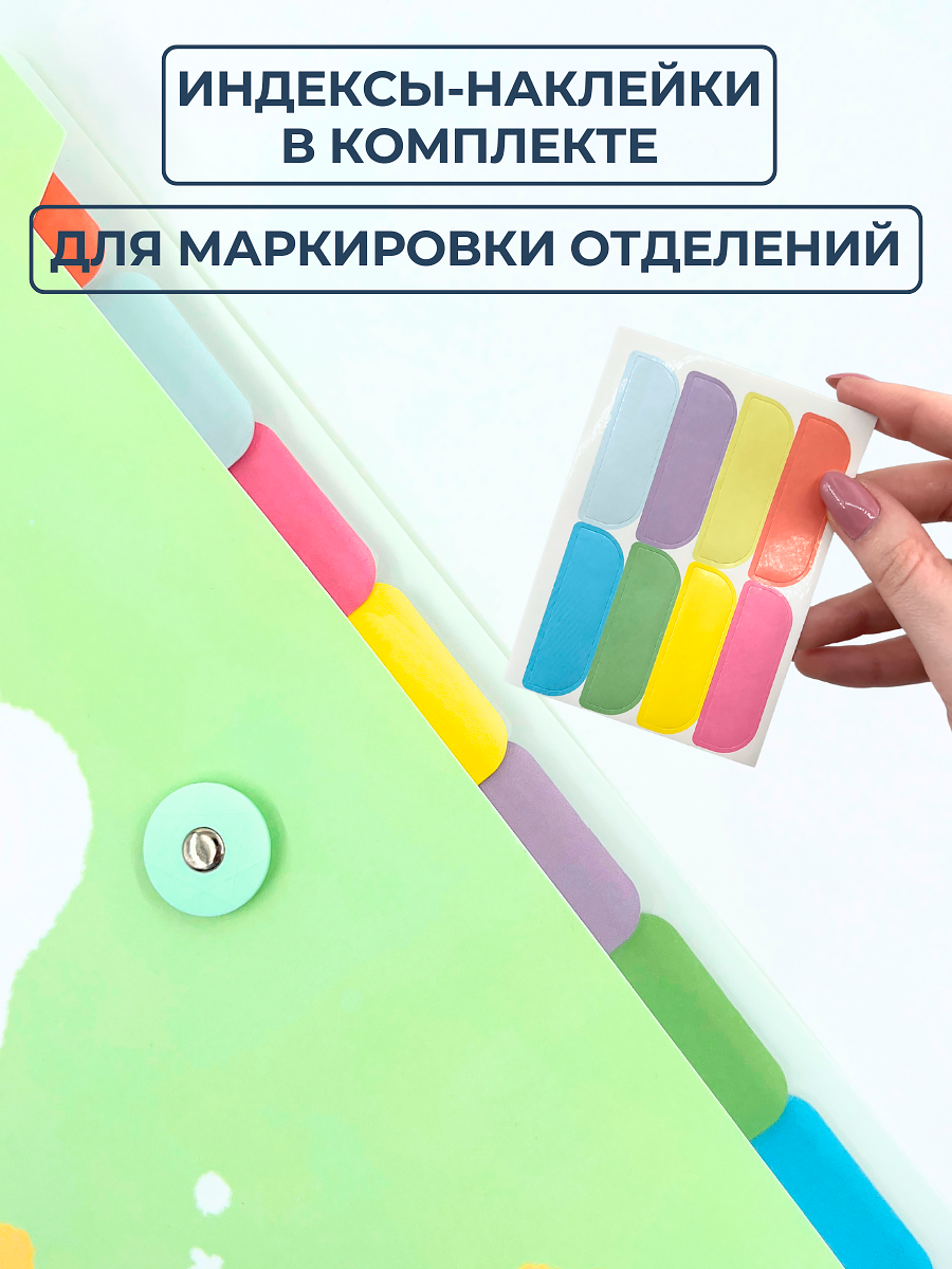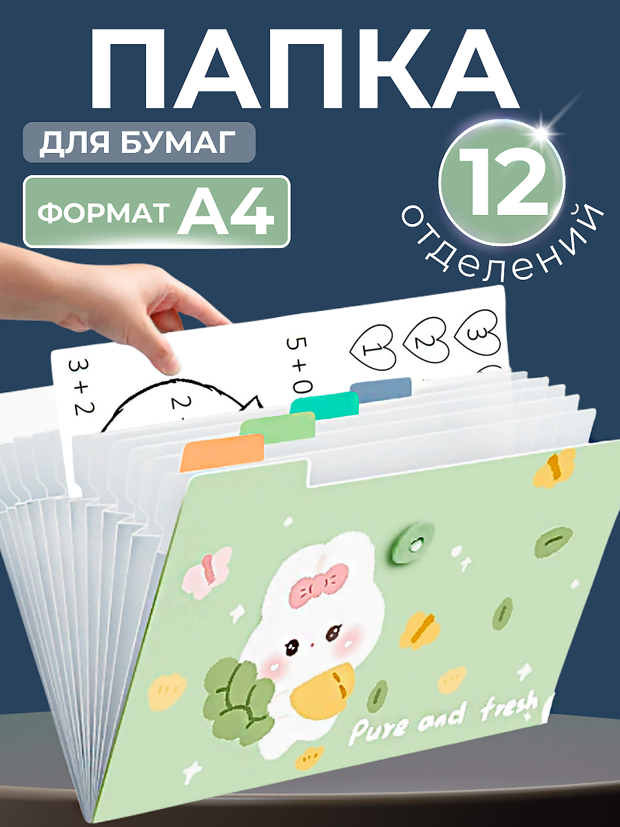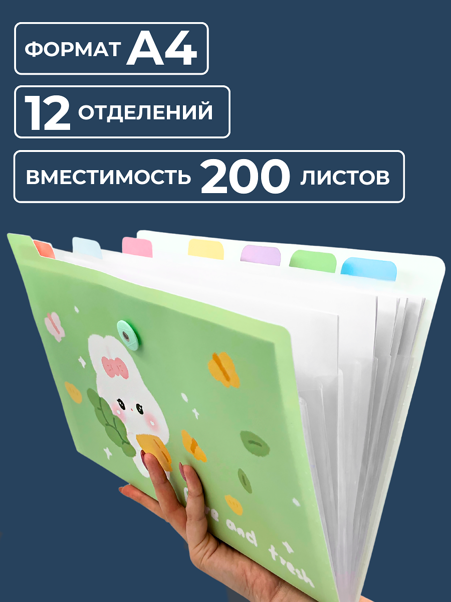 Папка органайзер CANBI для бумаг и рисунков а4, 12 отделений, зеленый интересное:
