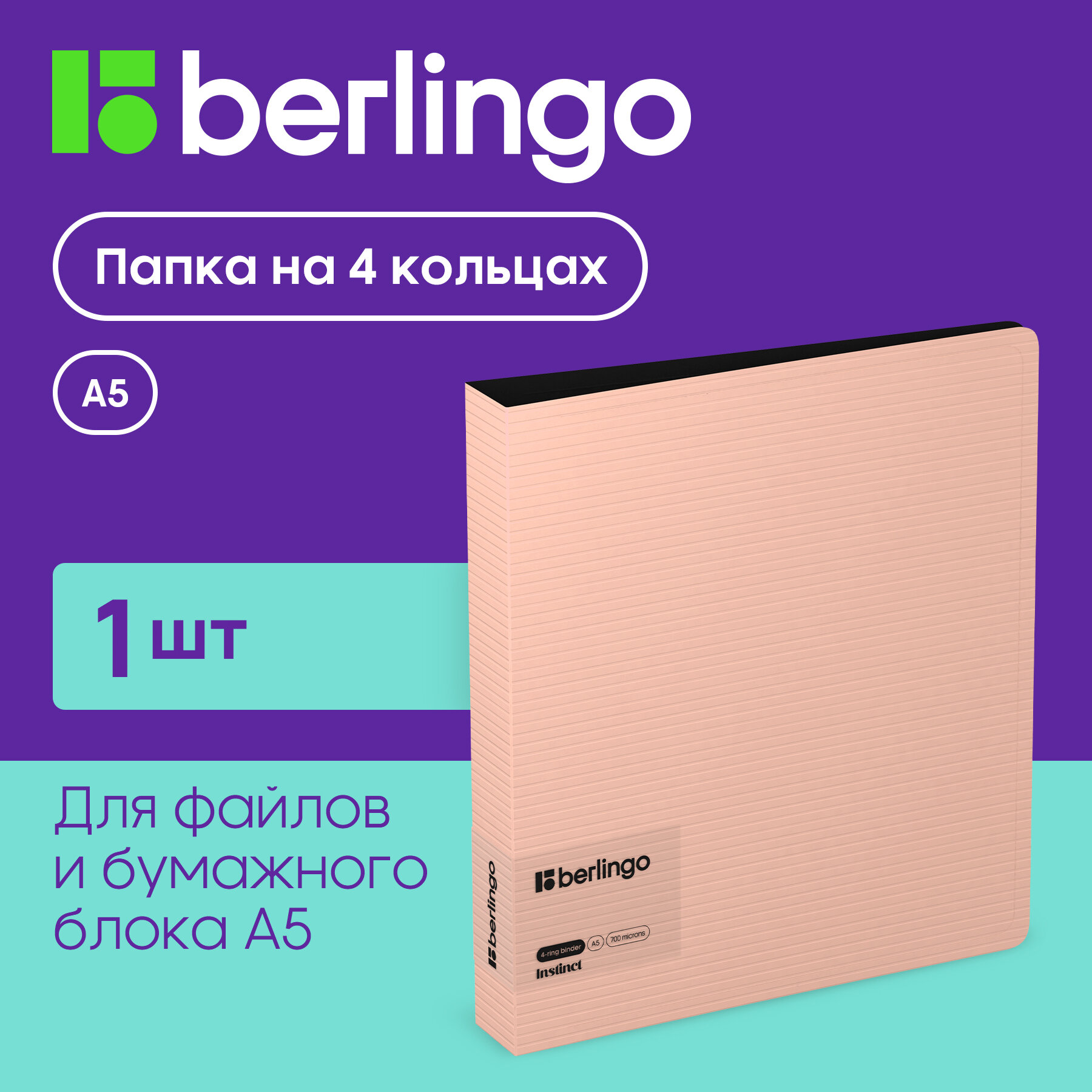 Купить Папка на 4 кольцах Berlingo "Instinct" А5, 35мм, 700мкм, D-кольца, с внутр. карманом, фламинго