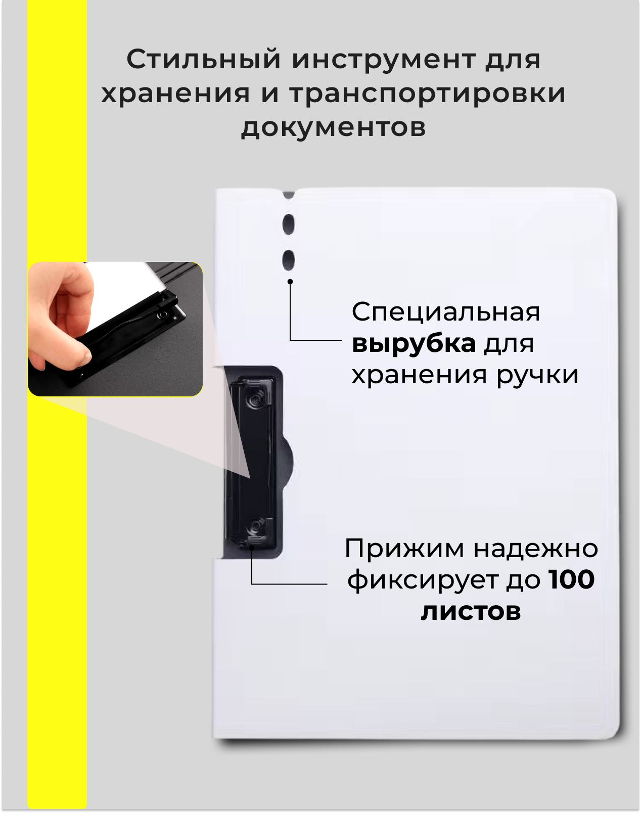 Планшет для бумаги канцелярский с боковым зажимом А4, белая интересное: