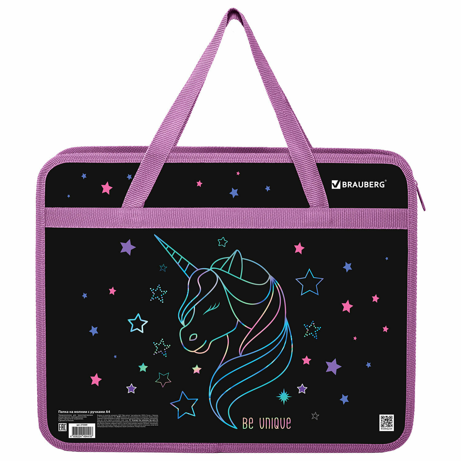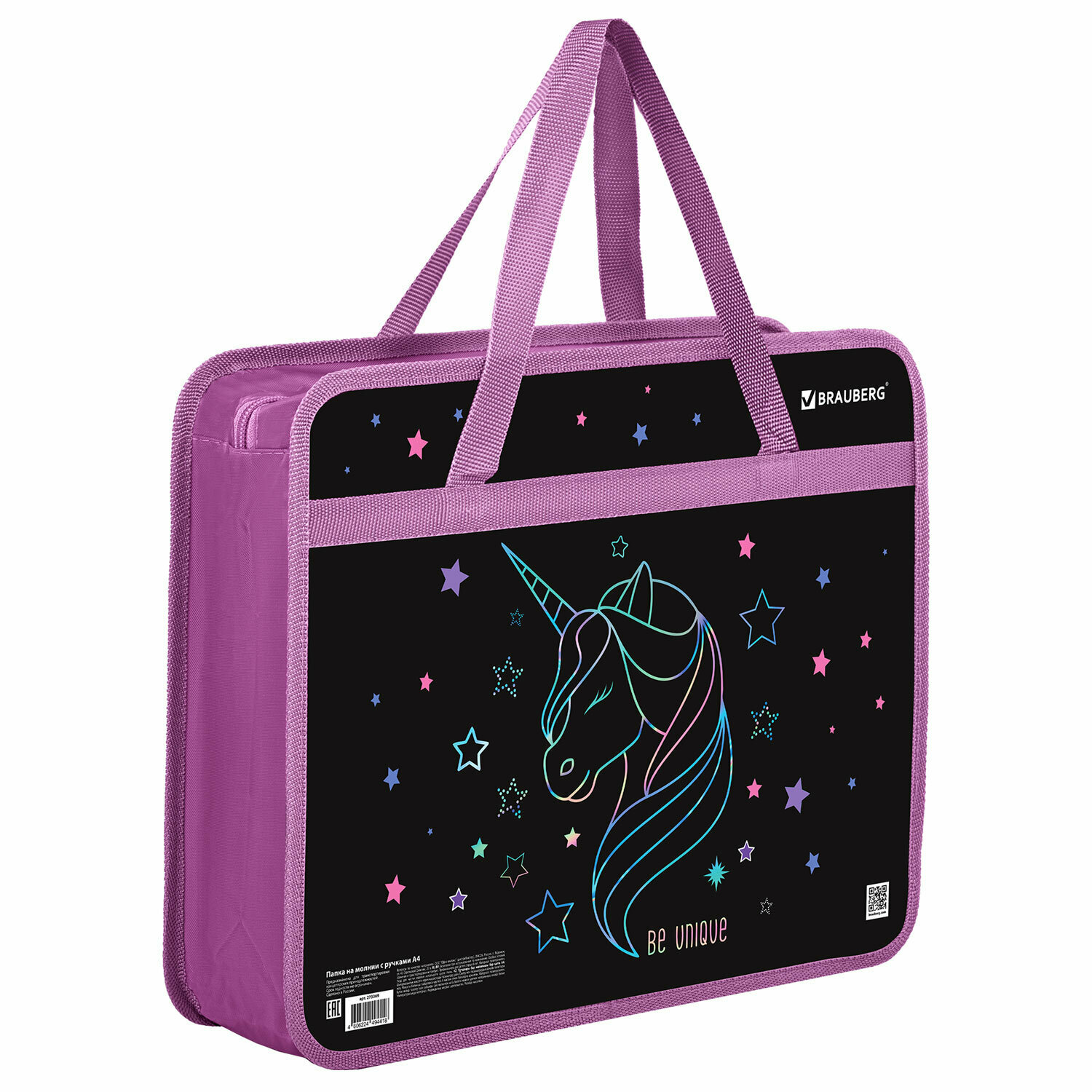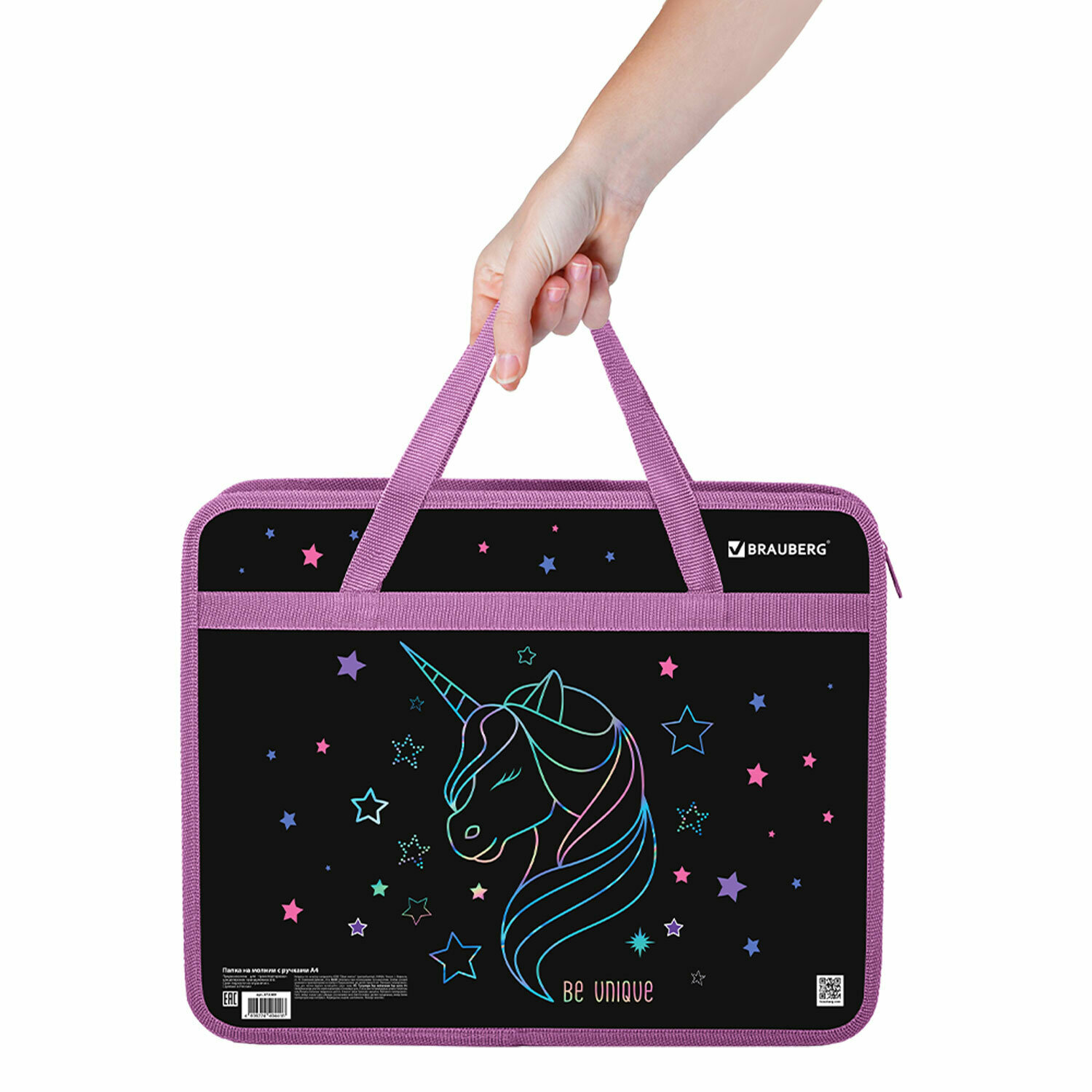 Купить Папка сумка для тетрадей, труда, рисования и изо А4 для девочки на молнии с ручками, канцелярия для школы, 1 отдел, Brauberg Radiant unicorn, 273369