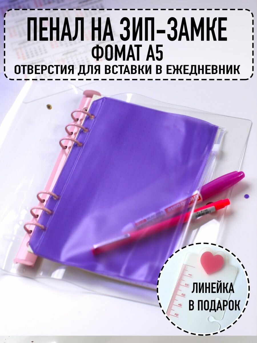 Вкладыш-пенал на zip-замке в тетрадь А5 на кольцх интересное: