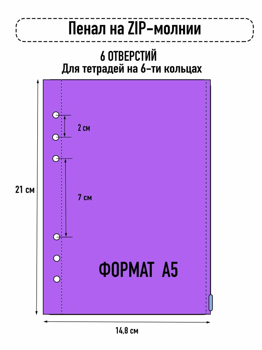 Вкладыш-пенал на zip-замке в тетрадь А5 на кольцах