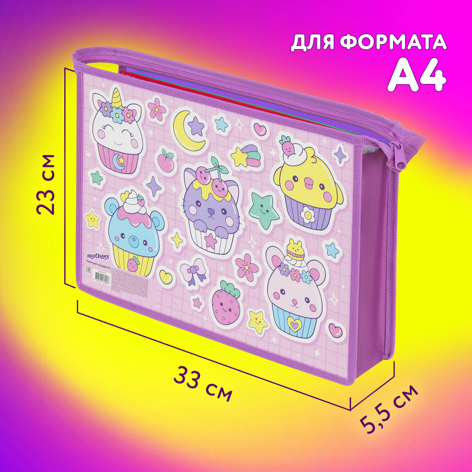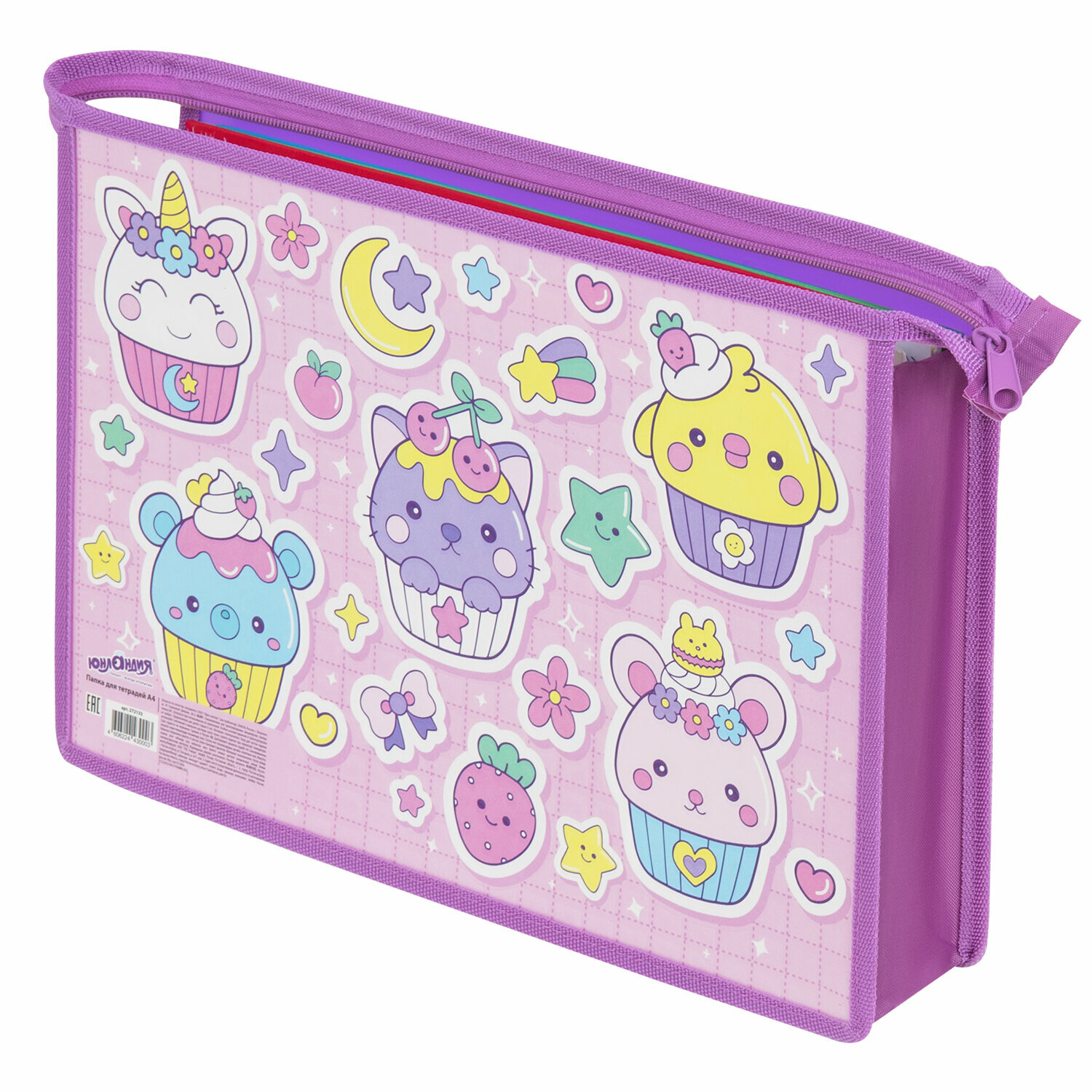 СохранитьПапка для тетрадей Юнландия А4, 1 отделение, картон/пластик, конгрев, на молнии, Sweets, 272133 интересное: