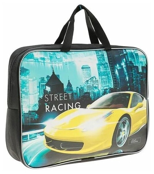Папка А4 текстильная с ручками, "Авто в огне" 350х270