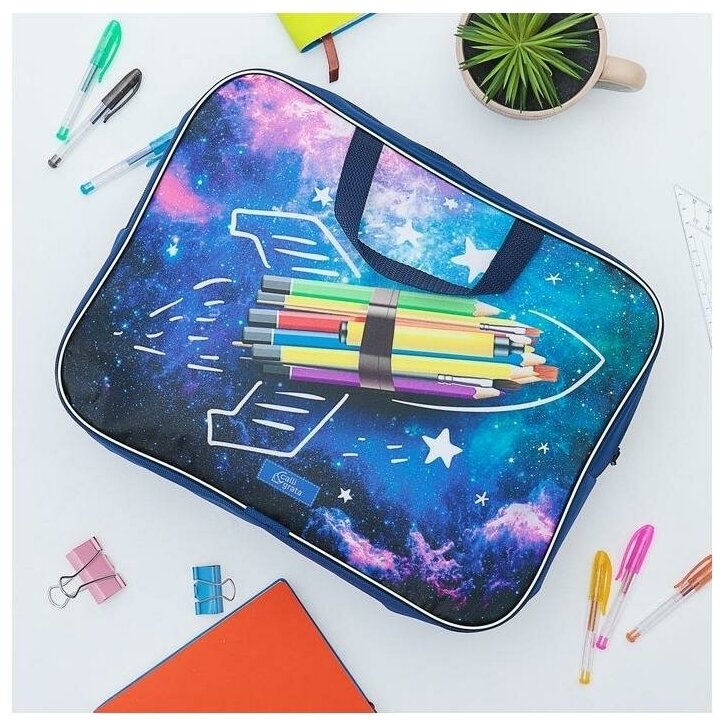 Папка с ручками А4, 340 х 245 х 75 мм, пластиковая, ручки-тесьма, Calligrata ПТ-14 "Звездолёт", 10062538