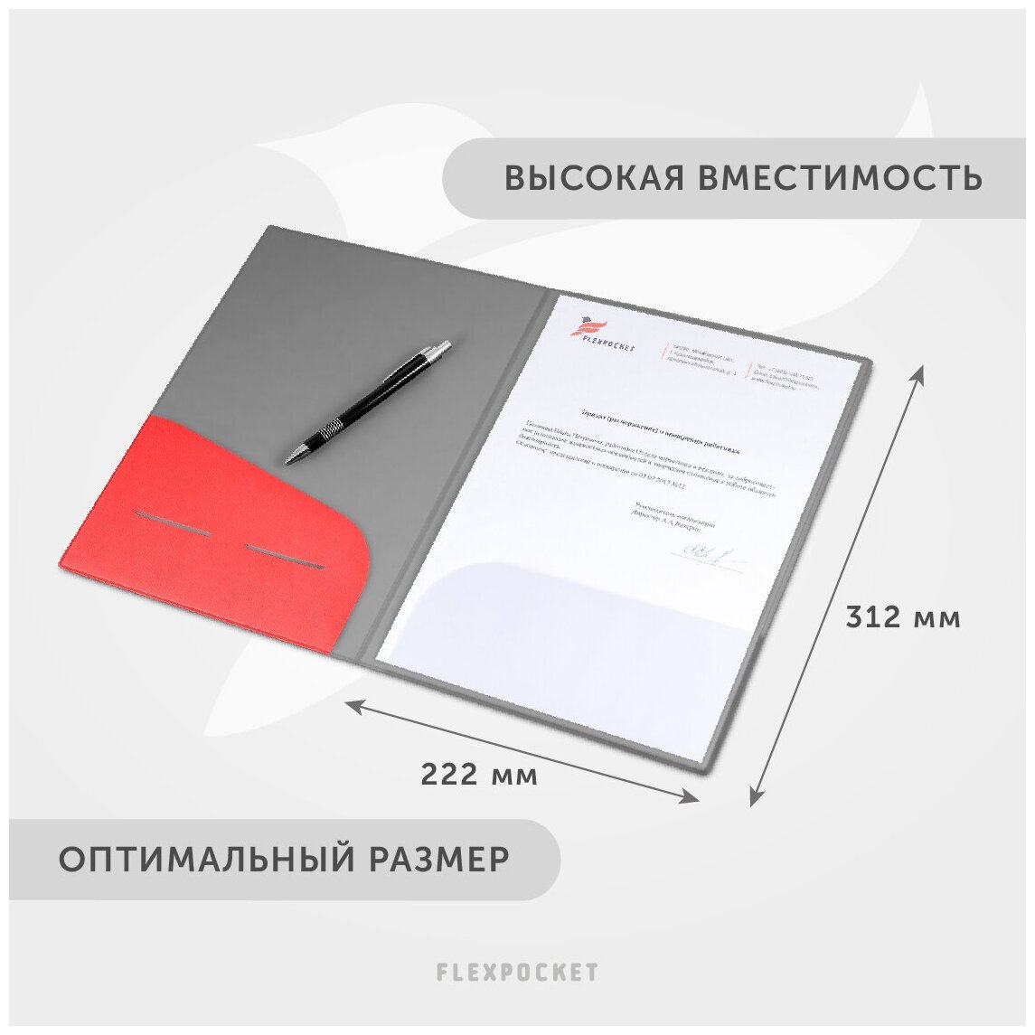 Папка для документов классическая Flexpocket из экокожи, формат А4, цвет серый